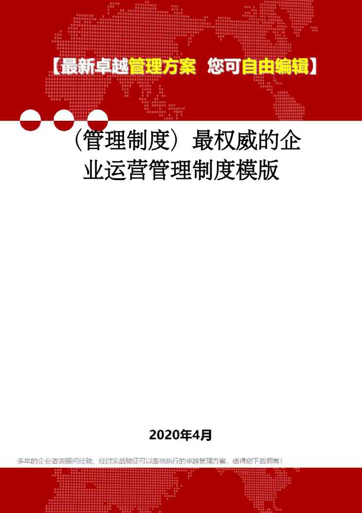 不久前,最新文档《(管理制度)最权威的企业运营管理制度模版》全文正式在本站发布,感兴趣的用户可以下载阅读。 声明:本站所有文章,如无特殊说明或标注,均为本站原创发布。任何个人或组织,在未征得本站同意时,禁止复制、盗用、采集、发布本站内容到任何网站、书籍等各类媒体平台。如若本站内容侵犯了原著者的合法权益,可联系我们进行处理。