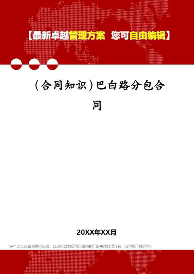不久前,最新文档《(合同知识)巴白路分包合同》全文正式在本站发布,感兴趣的用户可以下载阅读。 声明:本站所有文章,如无特殊说明或标注,均为本站原创发布。任何个人或组织,在未征得本站同意时,禁止复制、盗用、采集、发布本站内容到任何网站、书籍等各类媒体平台。如若本站内容侵犯了原著者的合法权益,可联系我们进行处理。