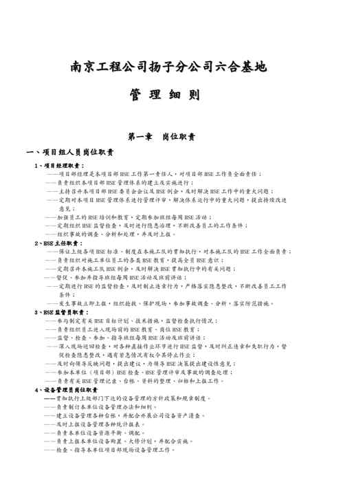 本站资深用户发布了最新的《建筑工程管理施工管理细则(工程类全套)》文档,以下内容为预览,详细内容可下载阅读。 声明:本站所有文章,如无特殊说明或标注,均为本站原创发布。任何个人或组织,在未征得本站同意时,禁止复制、盗用、采集、发布本站内容到任何网站、书籍等各类媒体平台。如若本站内容侵犯了原著者的合法权益,可联系我们进行处理。