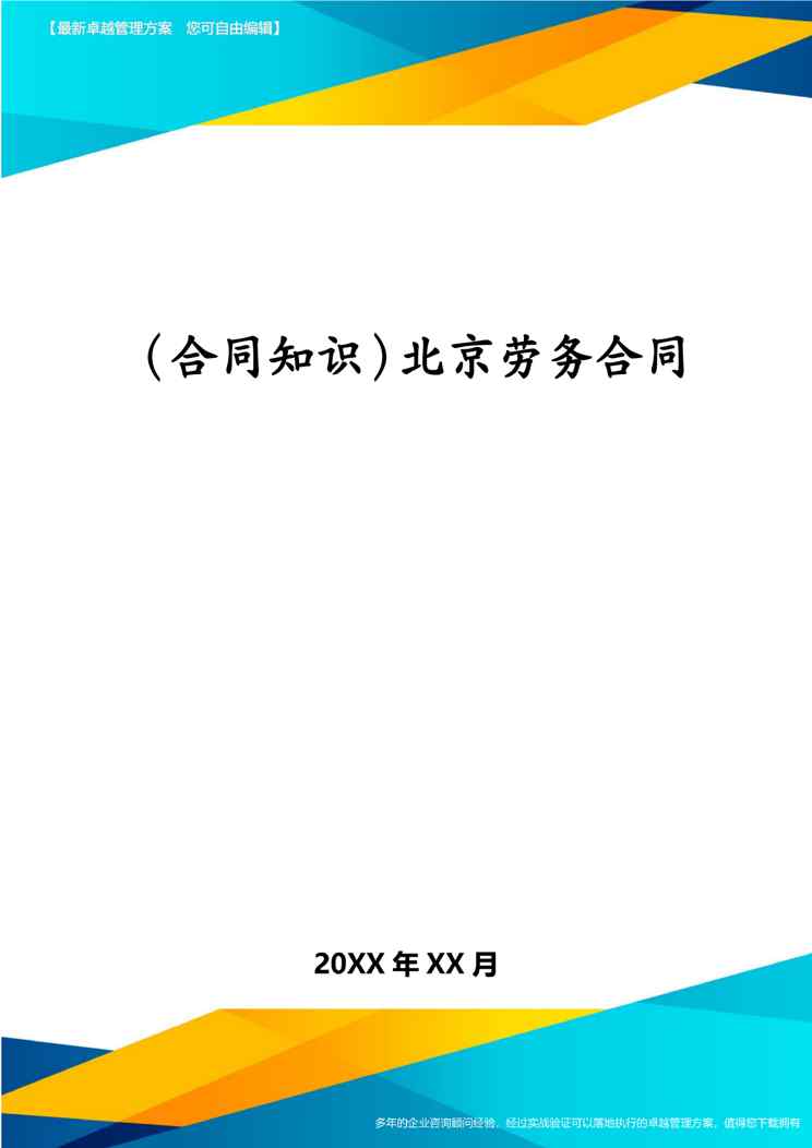 本站资深用户发布了最新的《(合同知识)北京劳务合同》文档,以下内容为预览,详细内容可下载阅读。 声明:本站所有文章,如无特殊说明或标注,均为本站原创发布。任何个人或组织,在未征得本站同意时,禁止复制、盗用、采集、发布本站内容到任何网站、书籍等各类媒体平台。如若本站内容侵犯了原著者的合法权益,可联系我们进行处理。