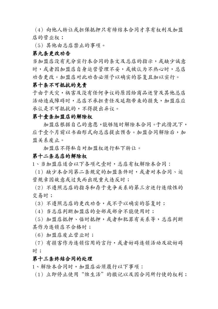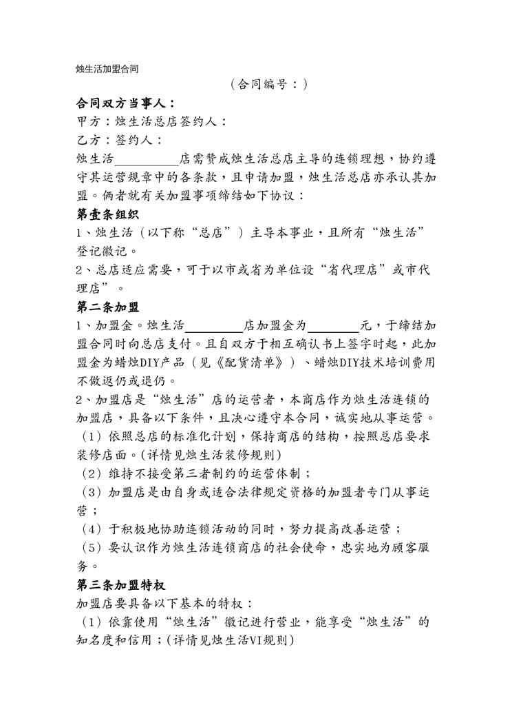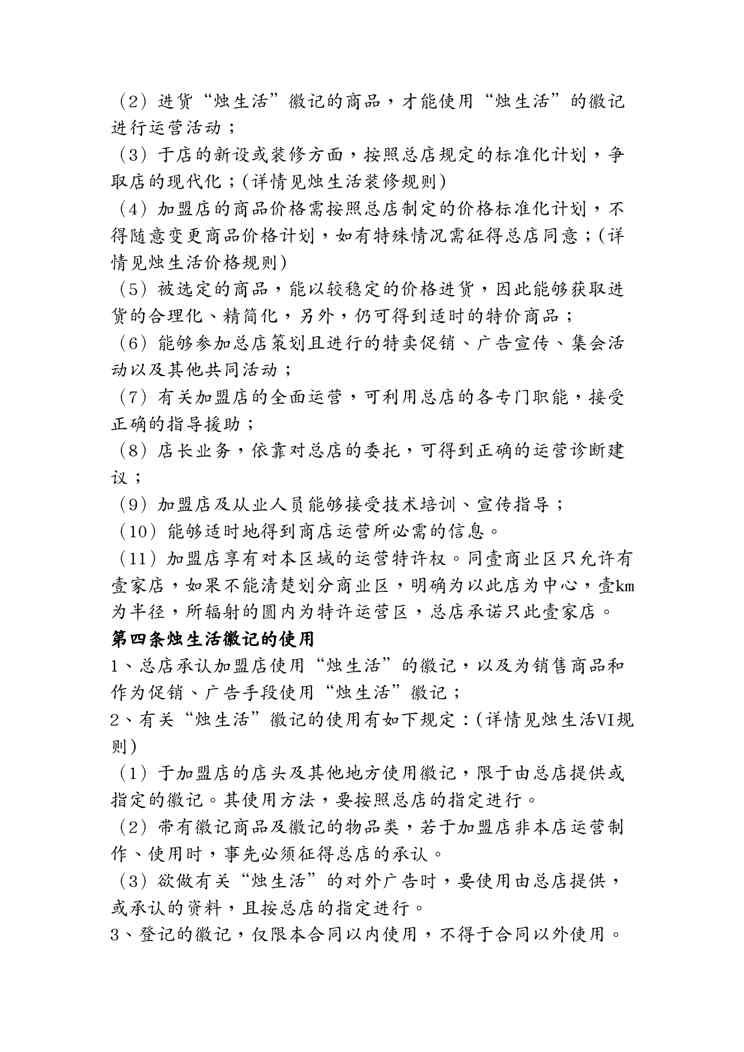 不久前,最新文档《(合同知识)标准店加盟合同书》全文正式在本站发布,感兴趣的用户可以下载阅读。 声明:本站所有文章,如无特殊说明或标注,均为本站原创发布。任何个人或组织,在未征得本站同意时,禁止复制、盗用、采集、发布本站内容到任何网站、书籍等各类媒体平台。如若本站内容侵犯了原著者的合法权益,可联系我们进行处理。