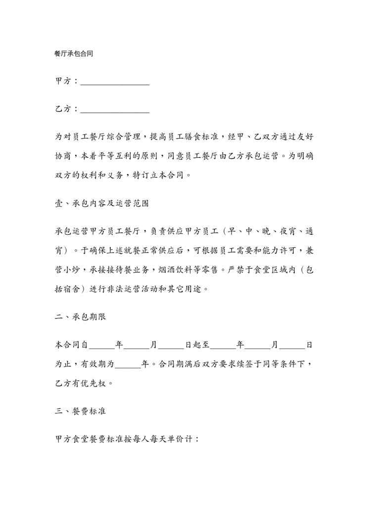 本站正式发布了《(合同知识)餐厅承包合同》文档,文档详细内容可下载阅读。 声明:本站所有文章,如无特殊说明或标注,均为本站原创发布。任何个人或组织,在未征得本站同意时,禁止复制、盗用、采集、发布本站内容到任何网站、书籍等各类媒体平台。如若本站内容侵犯了原著者的合法权益,可联系我们进行处理。