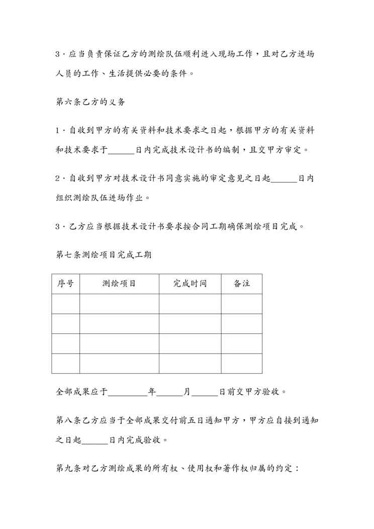 不久前,最新文档《(合同知识)测绘合同(GF)》全文正式在本站发布,感兴趣的用户可以下载阅读。 声明:本站所有文章,如无特殊说明或标注,均为本站原创发布。任何个人或组织,在未征得本站同意时,禁止复制、盗用、采集、发布本站内容到任何网站、书籍等各类媒体平台。如若本站内容侵犯了原著者的合法权益,可联系我们进行处理。