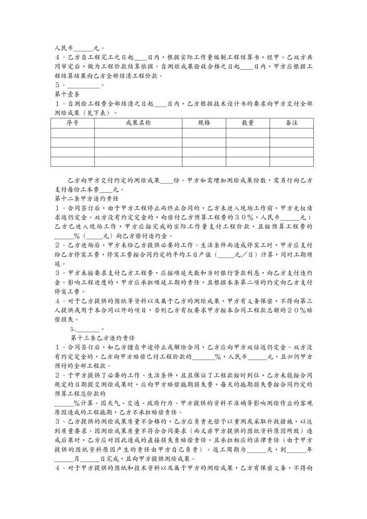 本站资深用户发布了最新的《(合同知识)测绘合同(一)》文档,以下内容为预览,详细内容可下载阅读。 声明:本站所有文章,如无特殊说明或标注,均为本站原创发布。任何个人或组织,在未征得本站同意时,禁止复制、盗用、采集、发布本站内容到任何网站、书籍等各类媒体平台。如若本站内容侵犯了原著者的合法权益,可联系我们进行处理。