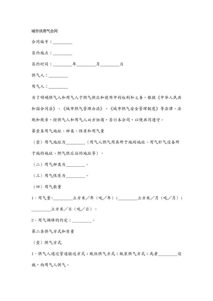 不久前,最新文档《(合同知识)城市供用气合同》全文正式在本站发布,感兴趣的用户可以下载阅读。 声明:本站所有文章,如无特殊说明或标注,均为本站原创发布。任何个人或组织,在未征得本站同意时,禁止复制、盗用、采集、发布本站内容到任何网站、书籍等各类媒体平台。如若本站内容侵犯了原著者的合法权益,可联系我们进行处理。