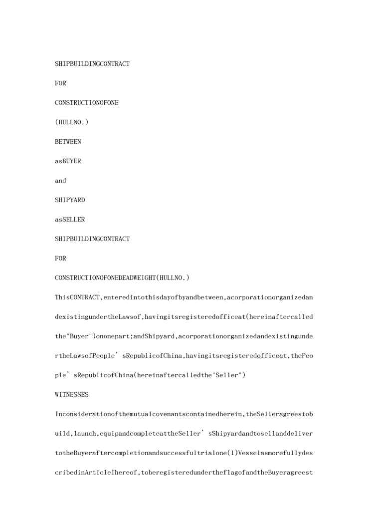 本站资深用户发布了最新的《(合同知识)船舶建造合同英文》文档,以下内容为预览,详细内容可下载阅读。