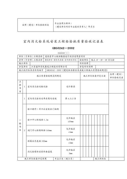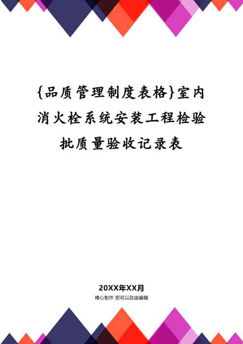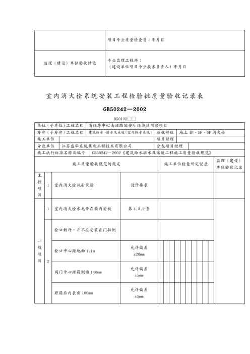 本站正式发布了《{品质管理制度表格}室内消火栓系统安装工程检验批质量验收记录表》文档,文档详细内容可下载阅读。 声明:本站所有文章,如无特殊说明或标注,均为本站原创发布。任何个人或组织,在未征得本站同意时,禁止复制、盗用、采集、发布本站内容到任何网站、书籍等各类媒体平台。如若本站内容侵犯了原著者的合法权益,可联系我们进行处理。