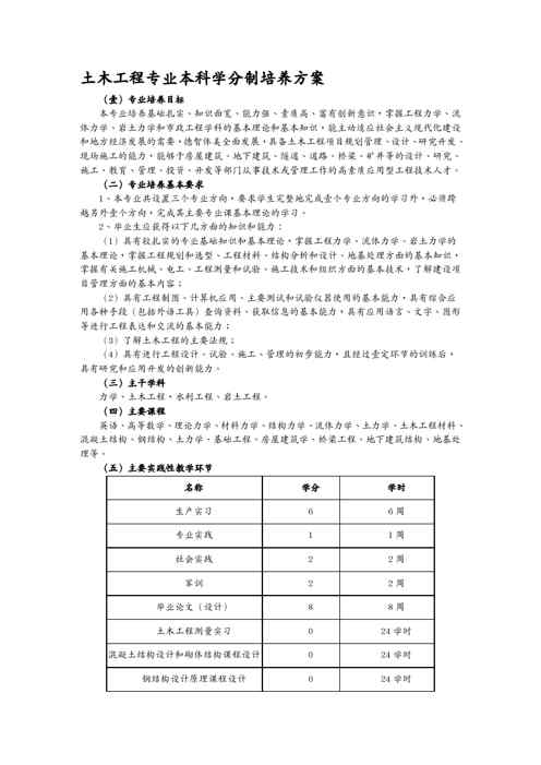 本站资深用户发布了最新的《建筑工程管理土木工程专业本科学分制培养方案》文档,以下内容为预览,详细内容可下载阅读。 声明:本站所有文章,如无特殊说明或标注,均为本站原创发布。任何个人或组织,在未征得本站同意时,禁止复制、盗用、采集、发布本站内容到任何网站、书籍等各类媒体平台。如若本站内容侵犯了原著者的合法权益,可联系我们进行处理。