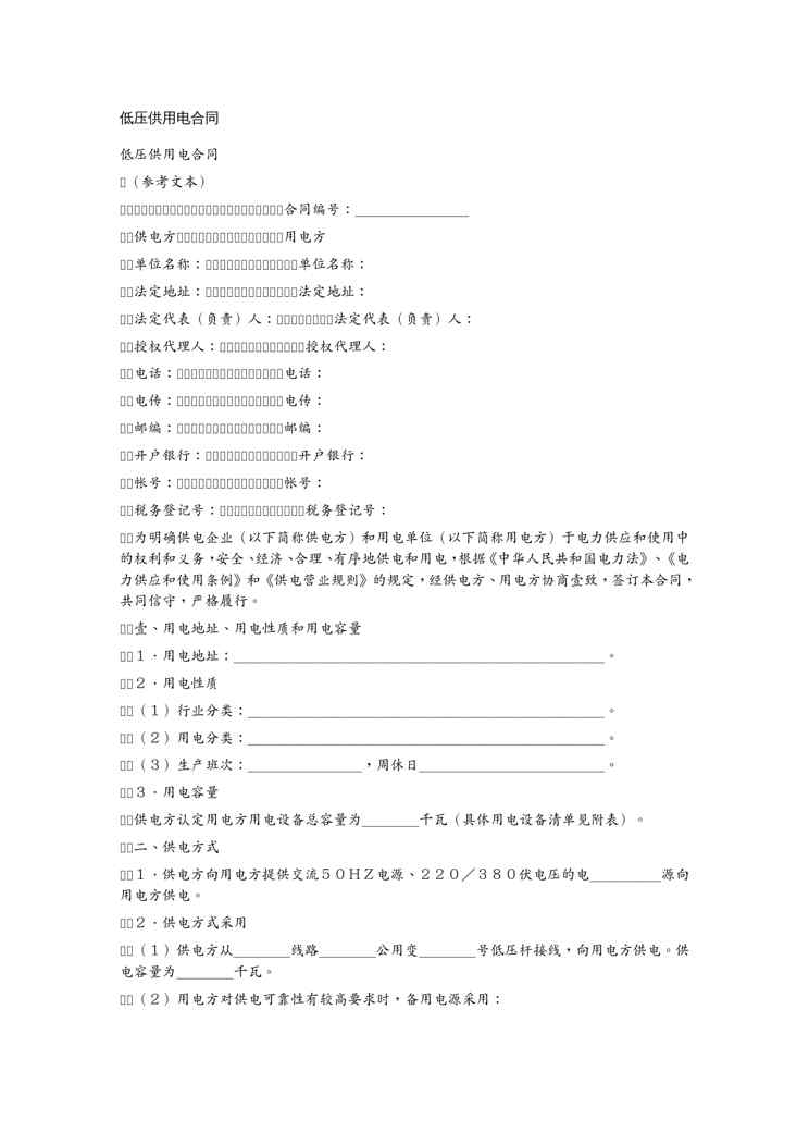 本站正式发布了《(合同知识)低压供用电合同》文档,文档详细内容可下载阅读。 声明:本站所有文章,如无特殊说明或标注,均为本站原创发布。任何个人或组织,在未征得本站同意时,禁止复制、盗用、采集、发布本站内容到任何网站、书籍等各类媒体平台。如若本站内容侵犯了原著者的合法权益,可联系我们进行处理。