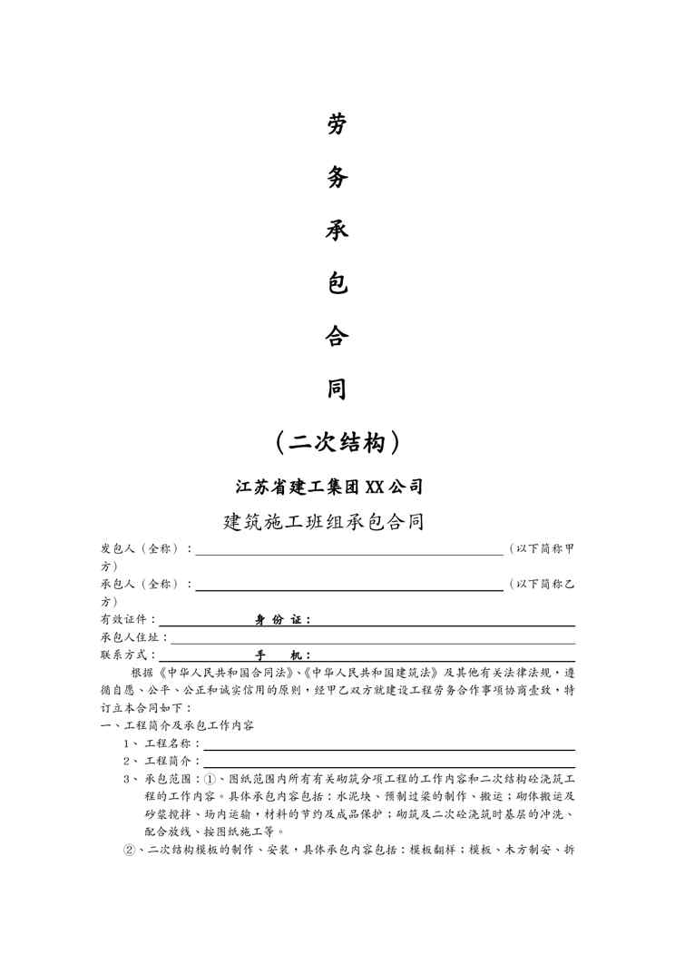 不久前,最新文档《(合同知识)二次结构合同》全文正式在本站发布,感兴趣的用户可以下载阅读。 声明:本站所有文章,如无特殊说明或标注,均为本站原创发布。任何个人或组织,在未征得本站同意时,禁止复制、盗用、采集、发布本站内容到任何网站、书籍等各类媒体平台。如若本站内容侵犯了原著者的合法权益,可联系我们进行处理。