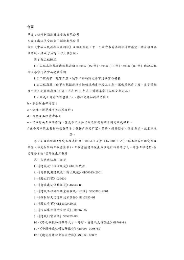 本站资深用户发布了最新的《(合同知识)防火卷帘合同》文档,以下内容为预览,详细内容可下载阅读。 声明:本站所有文章,如无特殊说明或标注,均为本站原创发布。任何个人或组织,在未征得本站同意时,禁止复制、盗用、采集、发布本站内容到任何网站、书籍等各类媒体平台。如若本站内容侵犯了原著者的合法权益,可联系我们进行处理。