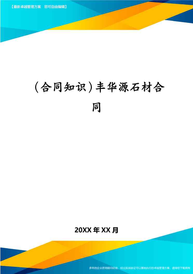 本站正式发布了《(合同知识)丰华源石材合同》文档,文档详细内容可下载阅读。 声明:本站所有文章,如无特殊说明或标注,均为本站原创发布。任何个人或组织,在未征得本站同意时,禁止复制、盗用、采集、发布本站内容到任何网站、书籍等各类媒体平台。如若本站内容侵犯了原著者的合法权益,可联系我们进行处理。