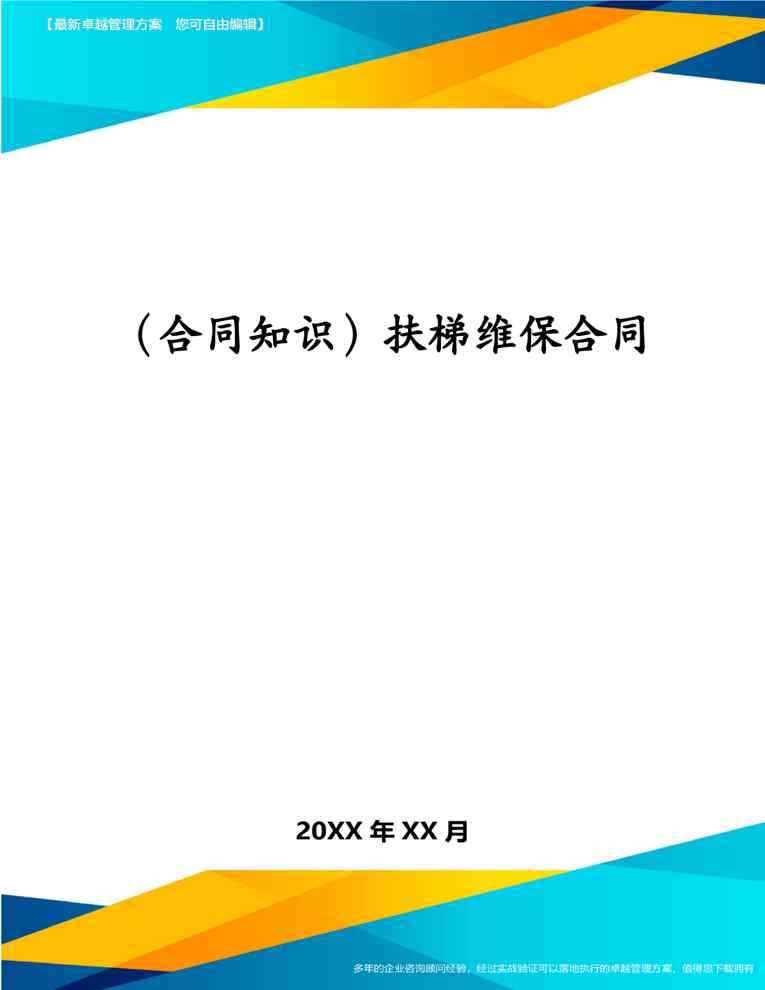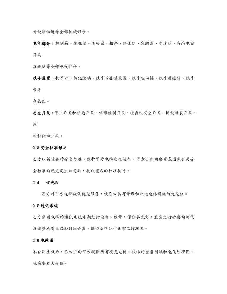 不久前,最新文档《(合同知识)扶梯维保合同》全文正式在本站发布,感兴趣的用户可以下载阅读。 声明:本站所有文章,如无特殊说明或标注,均为本站原创发布。任何个人或组织,在未征得本站同意时,禁止复制、盗用、采集、发布本站内容到任何网站、书籍等各类媒体平台。如若本站内容侵犯了原著者的合法权益,可联系我们进行处理。
