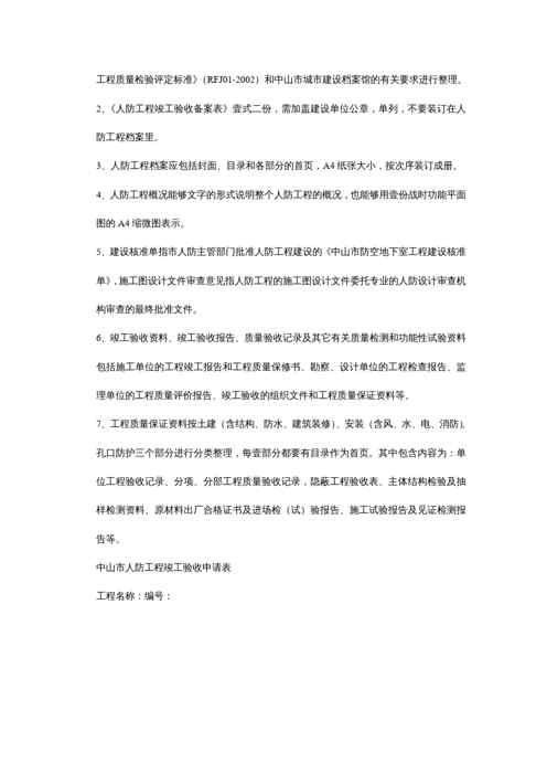本站正式发布了《建筑工程管理中山市人民防空工程竣工验收指引》文档,文档详细内容可下载阅读。 声明:本站所有文章,如无特殊说明或标注,均为本站原创发布。任何个人或组织,在未征得本站同意时,禁止复制、盗用、采集、发布本站内容到任何网站、书籍等各类媒体平台。如若本站内容侵犯了原著者的合法权益,可联系我们进行处理。