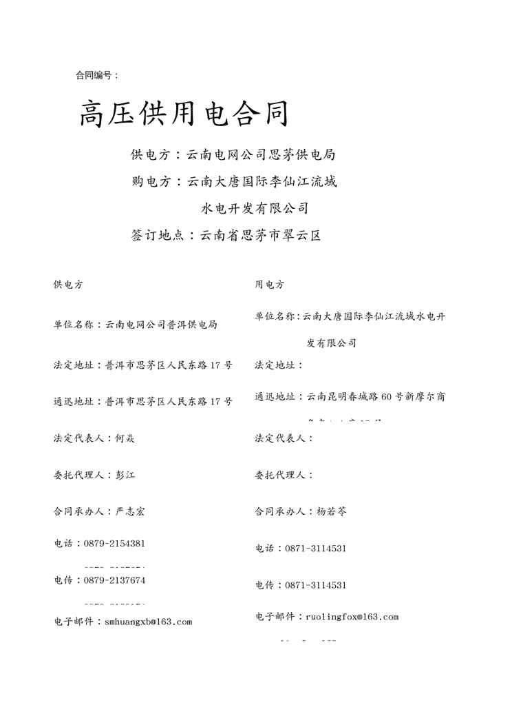 本站资深用户发布了最新的《(合同知识)高压供用电合同》文档,以下内容为预览,详细内容可下载阅读。 声明:本站所有文章,如无特殊说明或标注,均为本站原创发布。任何个人或组织,在未征得本站同意时,禁止复制、盗用、采集、发布本站内容到任何网站、书籍等各类媒体平台。如若本站内容侵犯了原著者的合法权益,可联系我们进行处理。