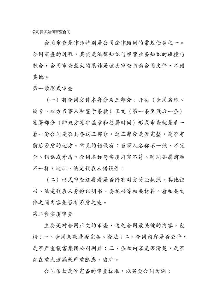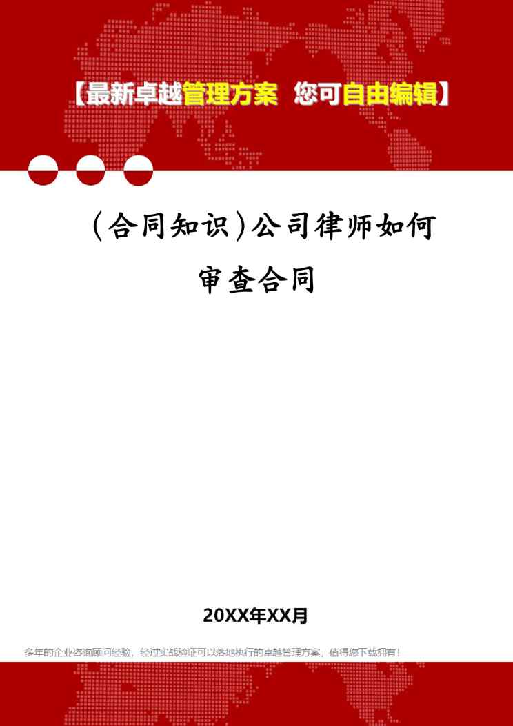 本站资深用户发布了最新的《(合同知识)公司律师如何审查合同》文档,以下内容为预览,详细内容可下载阅读。 声明:本站所有文章,如无特殊说明或标注,均为本站原创发布。任何个人或组织,在未征得本站同意时,禁止复制、盗用、采集、发布本站内容到任何网站、书籍等各类媒体平台。如若本站内容侵犯了原著者的合法权益,可联系我们进行处理。