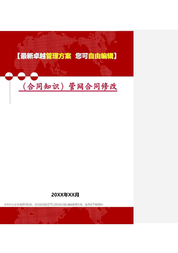 不久前,最新文档《(合同知识)管网合同修改》全文正式在本站发布,感兴趣的用户可以下载阅读。 声明:本站所有文章,如无特殊说明或标注,均为本站原创发布。任何个人或组织,在未征得本站同意时,禁止复制、盗用、采集、发布本站内容到任何网站、书籍等各类媒体平台。如若本站内容侵犯了原著者的合法权益,可联系我们进行处理。