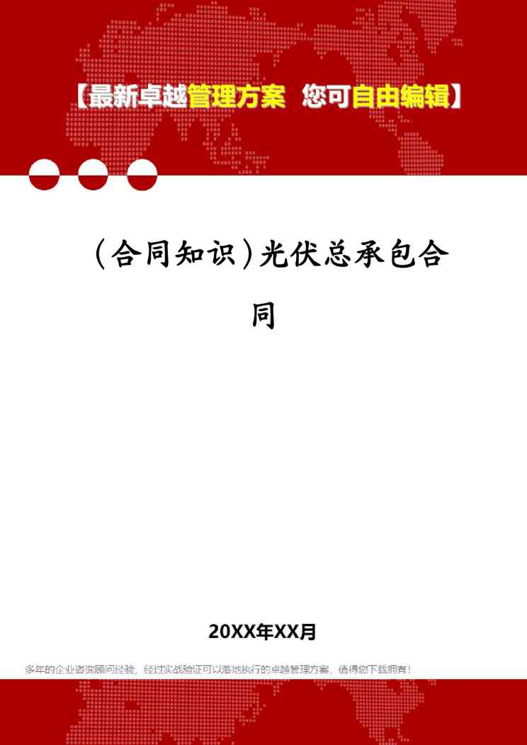 本站资深用户发布了最新的《(合同知识)光伏总承包合同》文档,以下内容为预览,详细内容可下载阅读。 声明:本站所有文章,如无特殊说明或标注,均为本站原创发布。任何个人或组织,在未征得本站同意时,禁止复制、盗用、采集、发布本站内容到任何网站、书籍等各类媒体平台。如若本站内容侵犯了原著者的合法权益,可联系我们进行处理。
