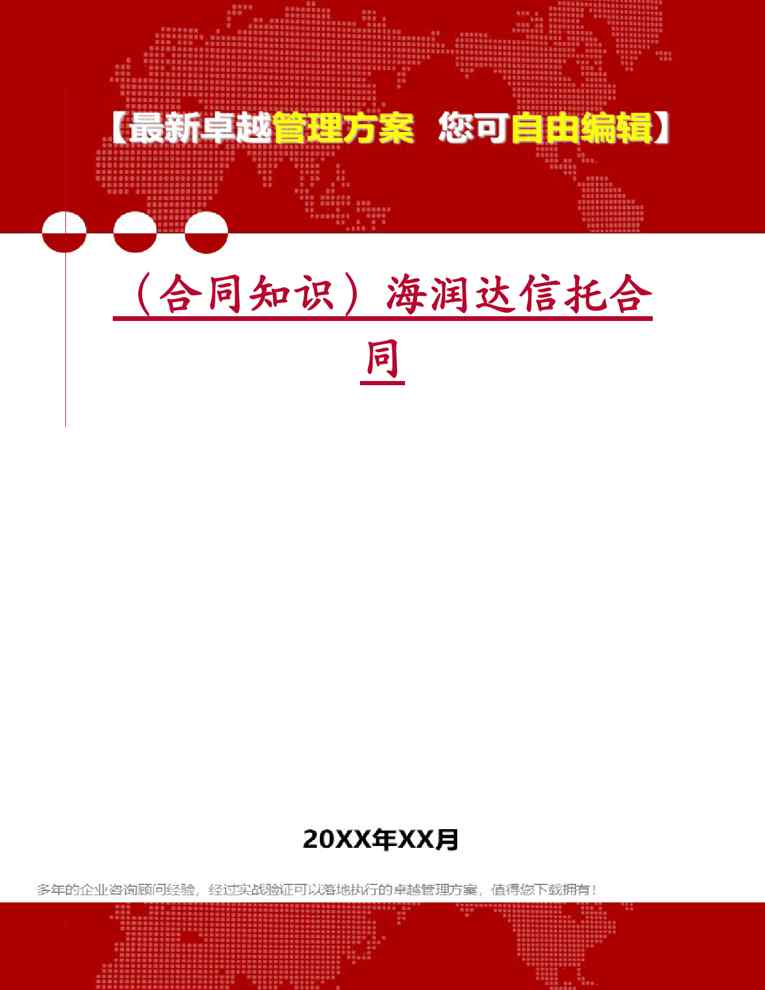 本站正式发布了《(合同知识)海润达信托合同》文档,文档详细内容可下载阅读。 声明:本站所有文章,如无特殊说明或标注,均为本站原创发布。任何个人或组织,在未征得本站同意时,禁止复制、盗用、采集、发布本站内容到任何网站、书籍等各类媒体平台。如若本站内容侵犯了原著者的合法权益,可联系我们进行处理。