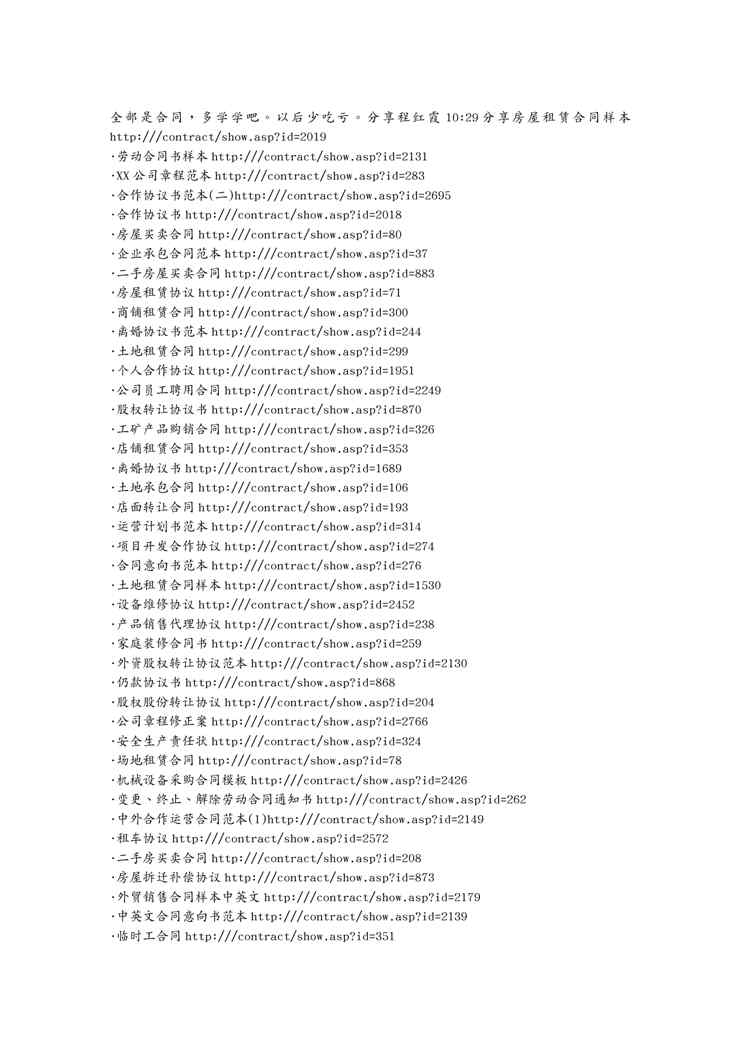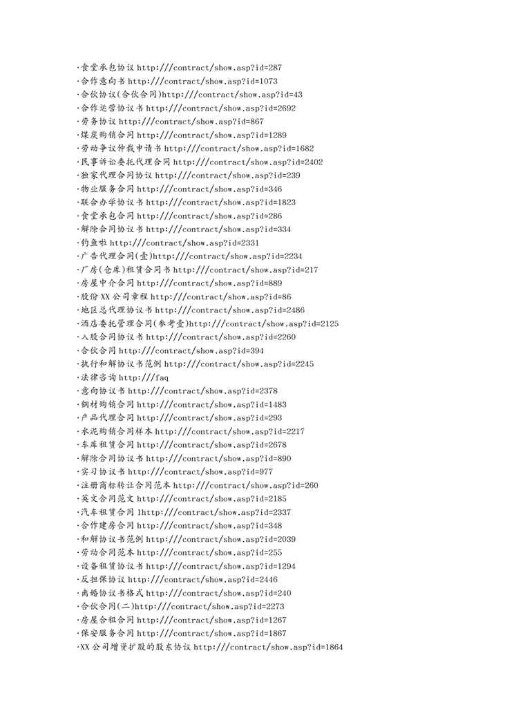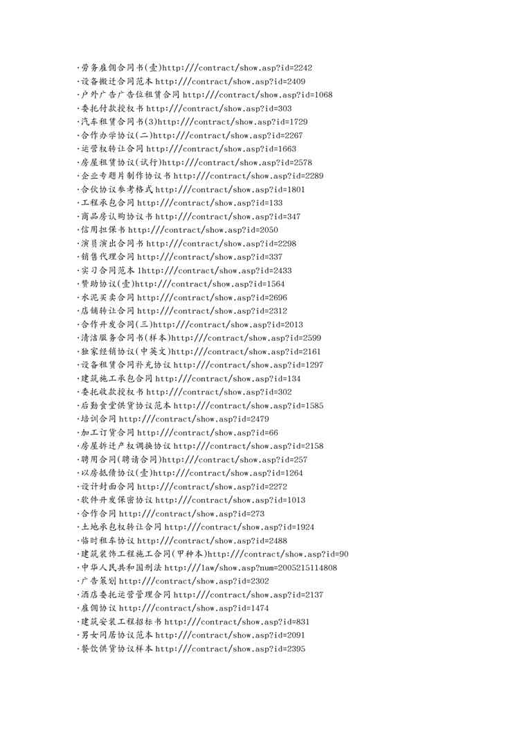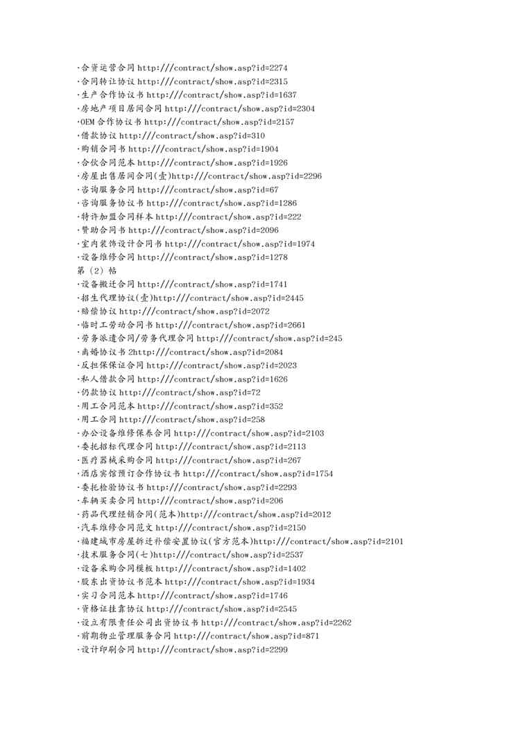 不久前,最新文档《(合同知识)合同大全梦翔上传》全文正式在本站发布,感兴趣的用户可以下载阅读。 声明:本站所有文章,如无特殊说明或标注,均为本站原创发布。任何个人或组织,在未征得本站同意时,禁止复制、盗用、采集、发布本站内容到任何网站、书籍等各类媒体平台。如若本站内容侵犯了原著者的合法权益,可联系我们进行处理。