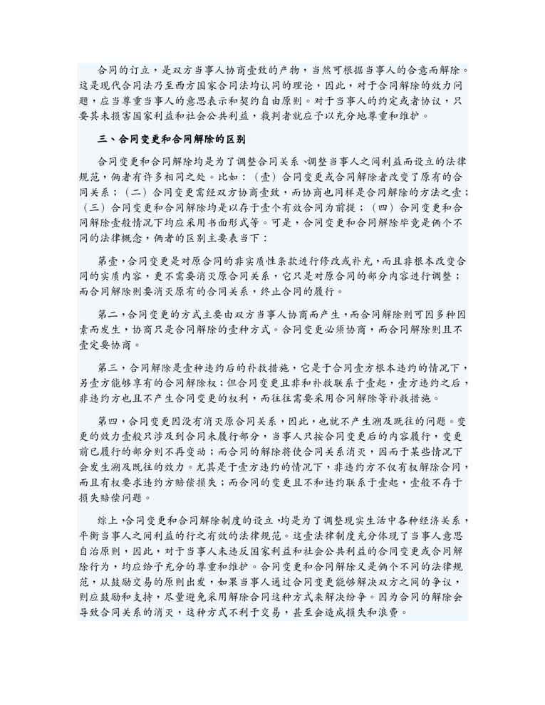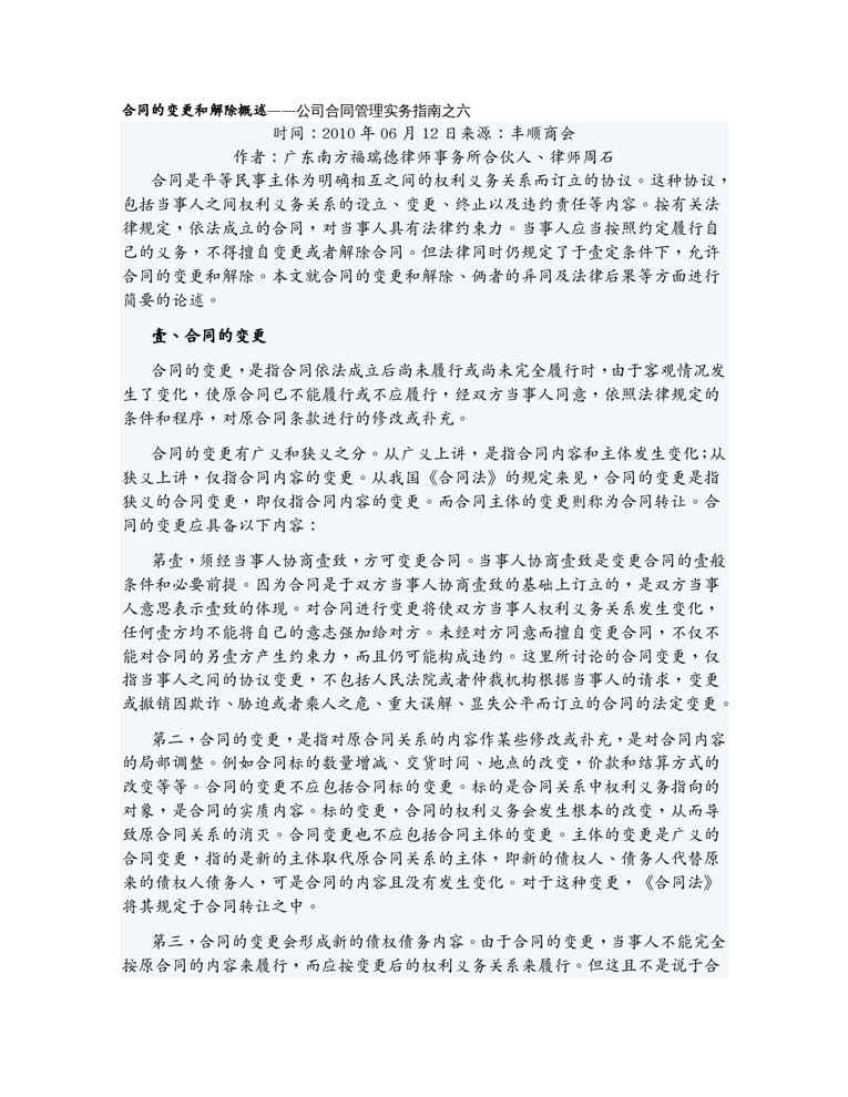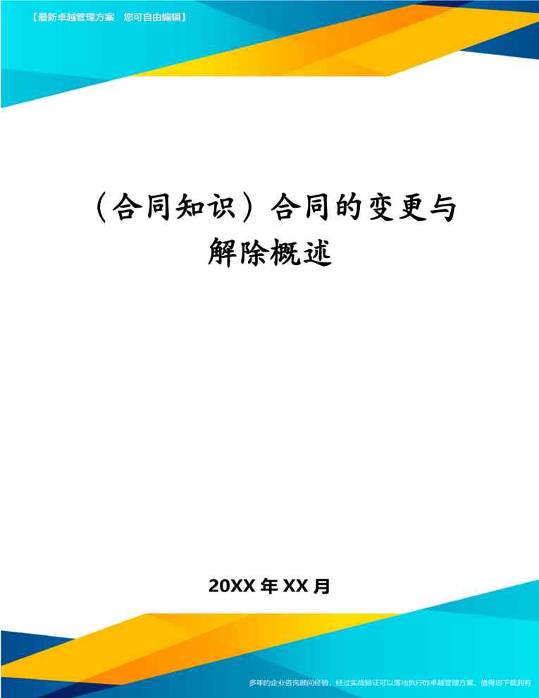 本站资深用户发布了最新的《(合同知识)合同的变更与解除概述》文档,以下内容为预览,详细内容可下载阅读。 声明:本站所有文章,如无特殊说明或标注,均为本站原创发布。任何个人或组织,在未征得本站同意时,禁止复制、盗用、采集、发布本站内容到任何网站、书籍等各类媒体平台。如若本站内容侵犯了原著者的合法权益,可联系我们进行处理。