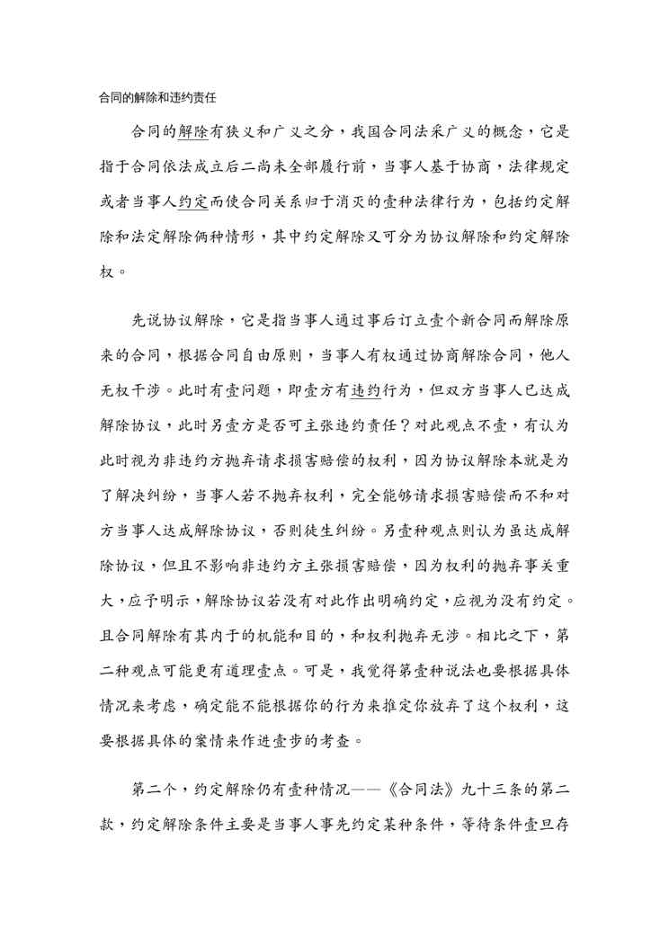 本站资深用户发布了最新的《(合同知识)合同的解除与违约责任》文档,以下内容为预览,详细内容可下载阅读。 声明:本站所有文章,如无特殊说明或标注,均为本站原创发布。任何个人或组织,在未征得本站同意时,禁止复制、盗用、采集、发布本站内容到任何网站、书籍等各类媒体平台。如若本站内容侵犯了原著者的合法权益,可联系我们进行处理。