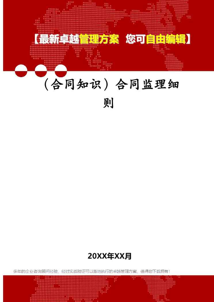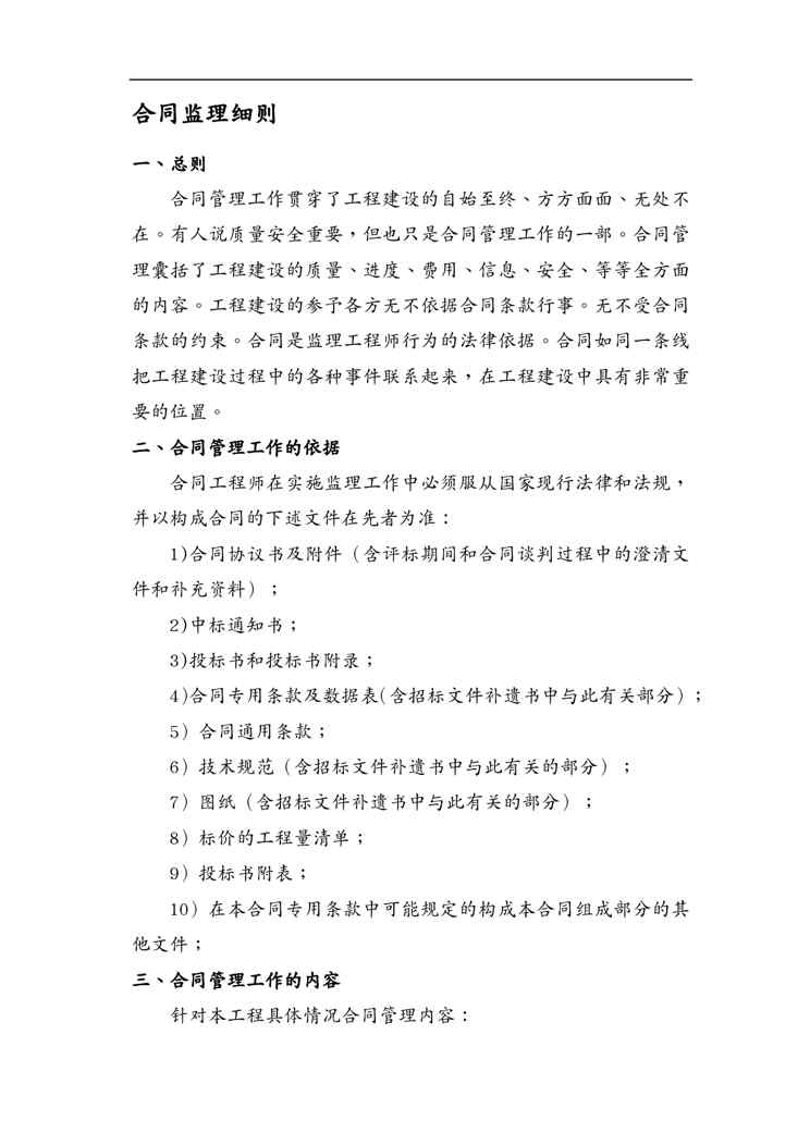 本站资深用户发布了最新的《(合同知识)合同监理细则》文档,以下内容为预览,详细内容可下载阅读。 声明:本站所有文章,如无特殊说明或标注,均为本站原创发布。任何个人或组织,在未征得本站同意时,禁止复制、盗用、采集、发布本站内容到任何网站、书籍等各类媒体平台。如若本站内容侵犯了原著者的合法权益,可联系我们进行处理。