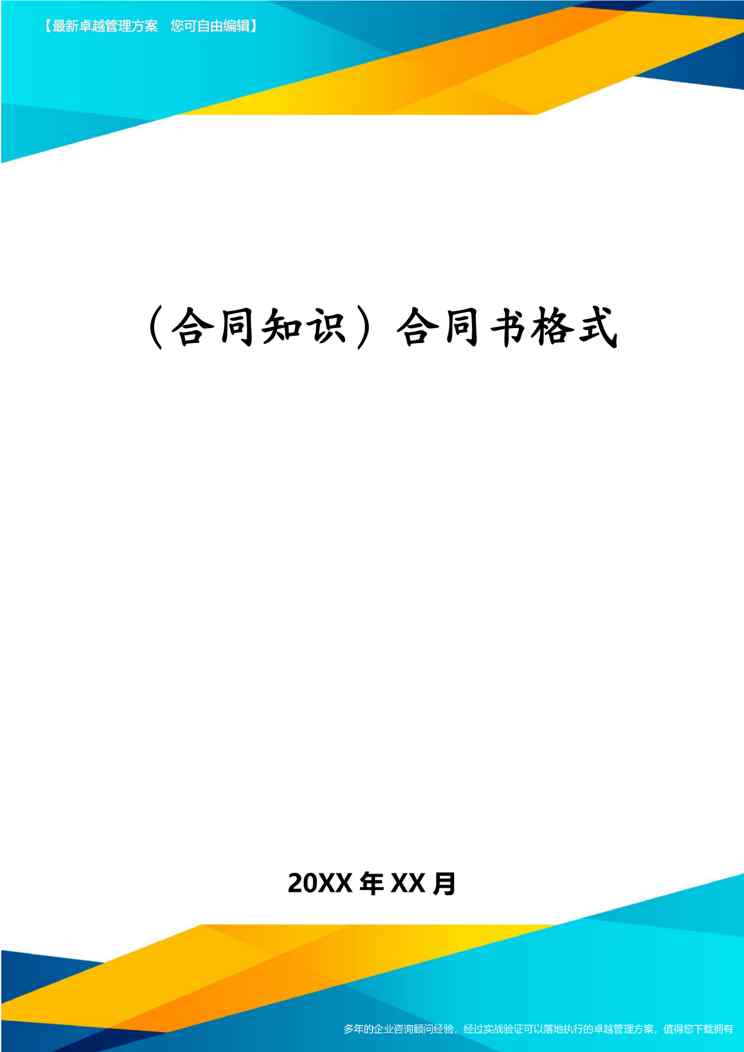 不久前,最新文档《(合同知识)合同书格式》全文正式在本站发布,感兴趣的用户可以下载阅读。 声明:本站所有文章,如无特殊说明或标注,均为本站原创发布。任何个人或组织,在未征得本站同意时,禁止复制、盗用、采集、发布本站内容到任何网站、书籍等各类媒体平台。如若本站内容侵犯了原著者的合法权益,可联系我们进行处理。