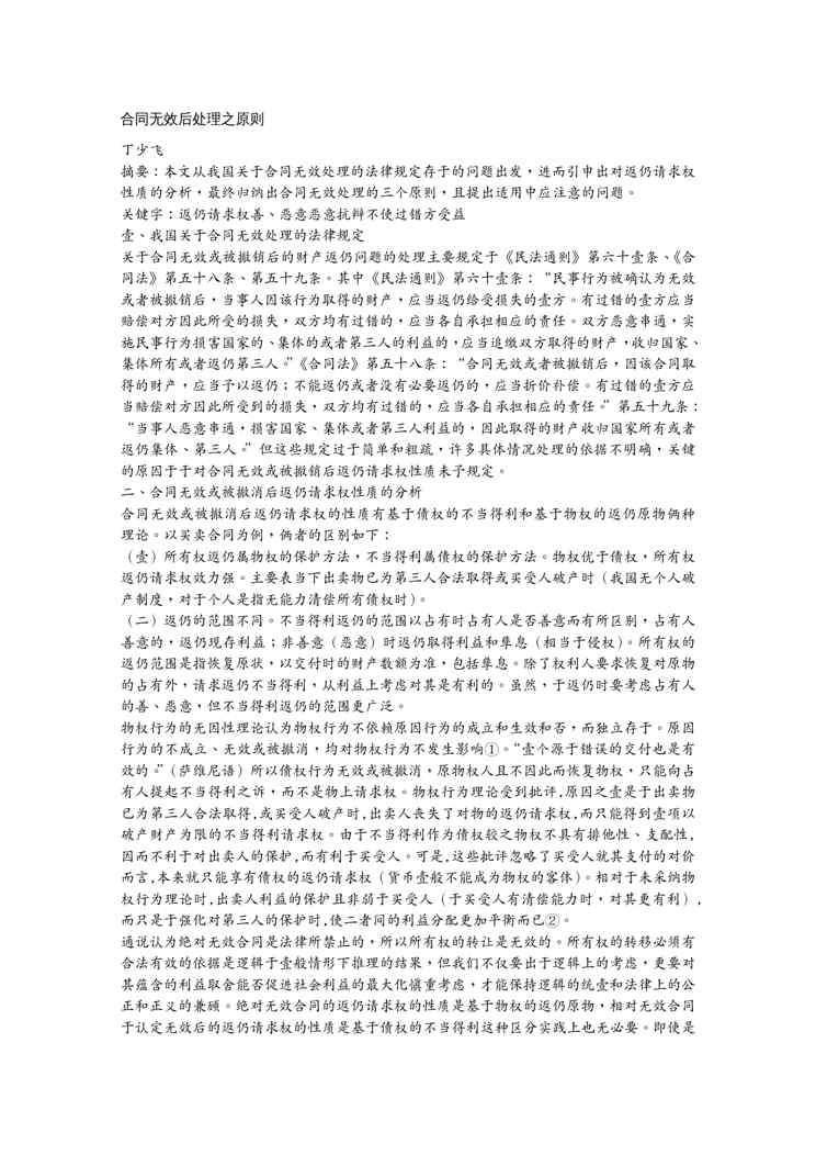不久前,最新文档《(合同知识)合同无效后处理之原则》全文正式在本站发布,感兴趣的用户可以下载阅读。 声明:本站所有文章,如无特殊说明或标注,均为本站原创发布。任何个人或组织,在未征得本站同意时,禁止复制、盗用、采集、发布本站内容到任何网站、书籍等各类媒体平台。如若本站内容侵犯了原著者的合法权益,可联系我们进行处理。