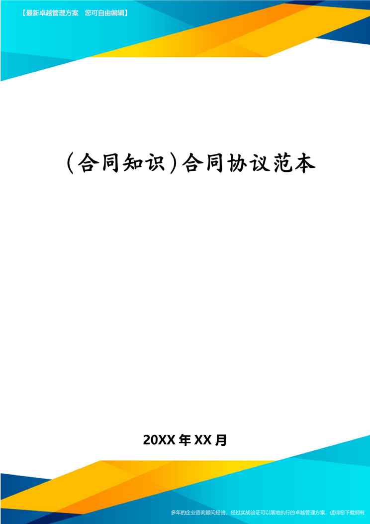 本站资深用户发布了最新的《(合同知识)合同协议范本》文档,以下内容为预览,详细内容可下载阅读。 声明:本站所有文章,如无特殊说明或标注,均为本站原创发布。任何个人或组织,在未征得本站同意时,禁止复制、盗用、采集、发布本站内容到任何网站、书籍等各类媒体平台。如若本站内容侵犯了原著者的合法权益,可联系我们进行处理。