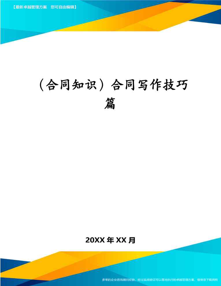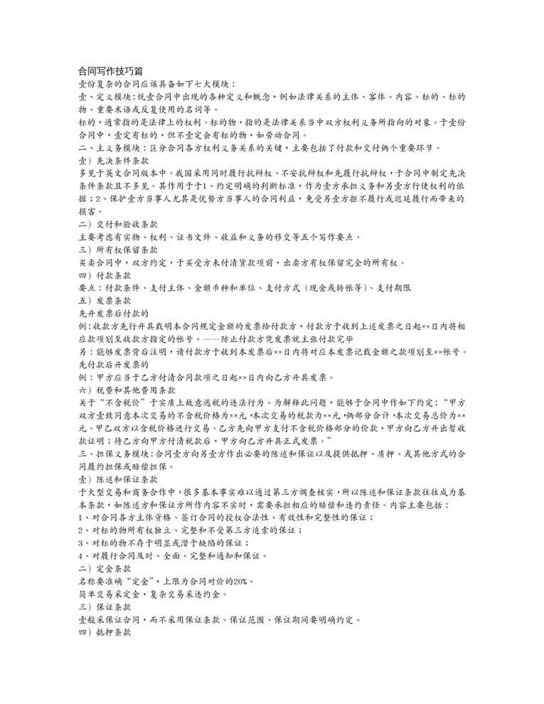 本站正式发布了《(合同知识)合同写作技巧篇》文档,文档详细内容可下载阅读。 声明:本站所有文章,如无特殊说明或标注,均为本站原创发布。任何个人或组织,在未征得本站同意时,禁止复制、盗用、采集、发布本站内容到任何网站、书籍等各类媒体平台。如若本站内容侵犯了原著者的合法权益,可联系我们进行处理。