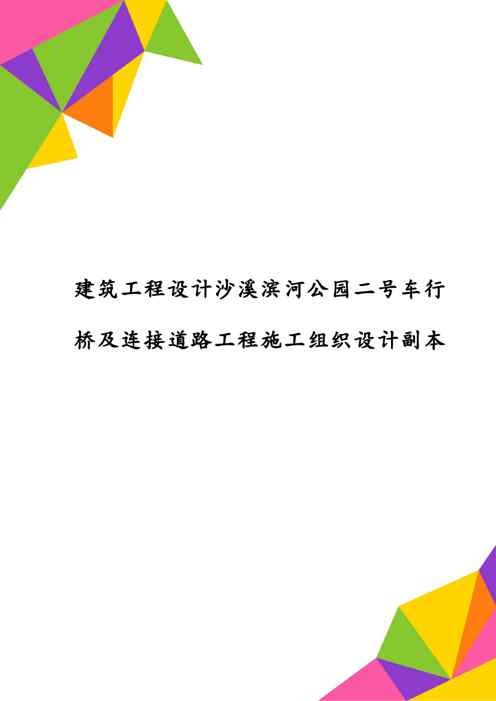 本站正式发布了《建筑工程设计沙溪滨河公园二号车行桥及连接道路工程施工组织设计副本》文档,文档详细内容可下载阅读。 声明:本站所有文章,如无特殊说明或标注,均为本站原创发布。任何个人或组织,在未征得本站同意时,禁止复制、盗用、采集、发布本站内容到任何网站、书籍等各类媒体平台。如若本站内容侵犯了原著者的合法权益,可联系我们进行处理。