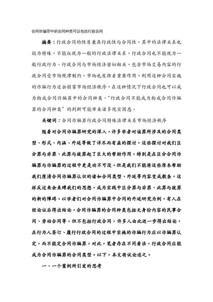 不久前,最新文档《(合同知识)合同诈骗罪中的合同种类可以包括行政合同》全文正式在本站发布,感兴趣的用户可以下载阅读。 声明:本站所有文章,如无特殊说明或标注,均为本站原创发布。任何个人或组织,在未征得本站同意时,禁止复制、盗用、采集、发布本站内容到任何网站、书籍等各类媒体平台。如若本站内容侵犯了原著者的合法权益,可联系我们进行处理。
