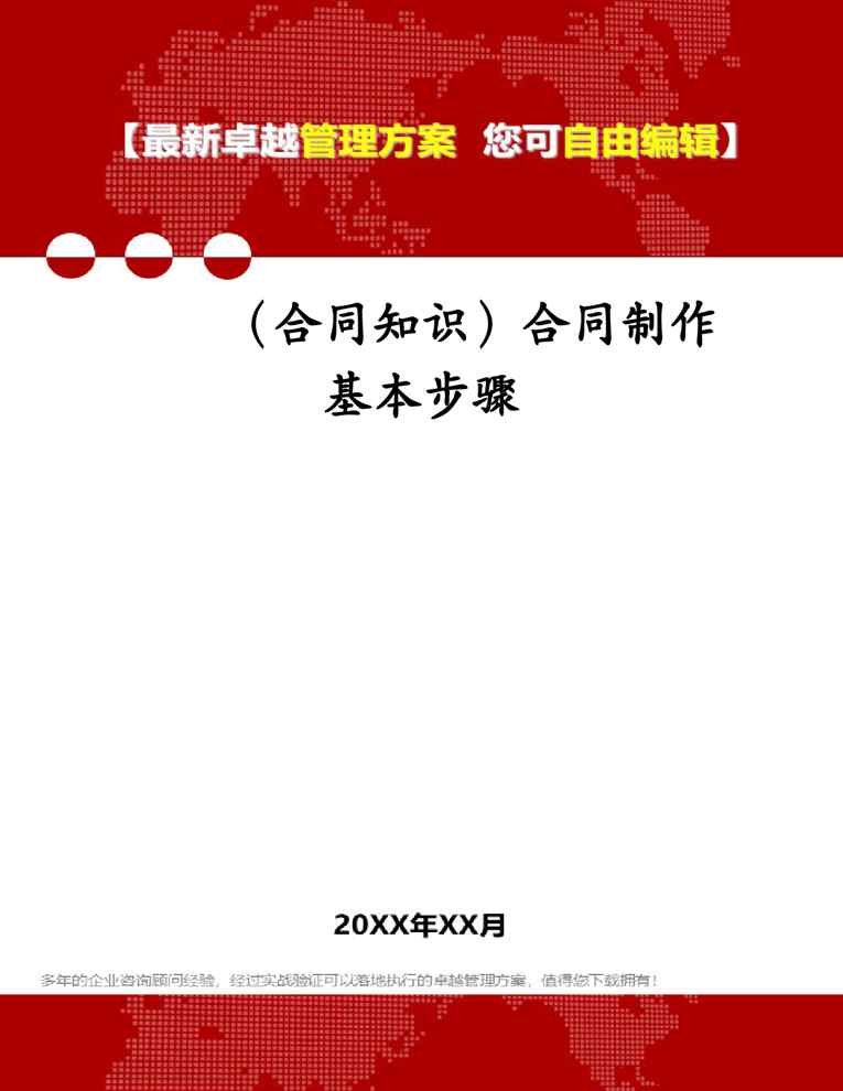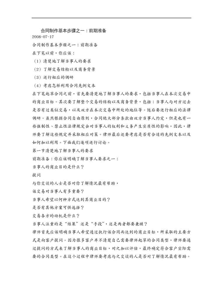 本站资深用户发布了最新的《(合同知识)合同制作基本步骤》文档,以下内容为预览,详细内容可下载阅读。 声明:本站所有文章,如无特殊说明或标注,均为本站原创发布。任何个人或组织,在未征得本站同意时,禁止复制、盗用、采集、发布本站内容到任何网站、书籍等各类媒体平台。如若本站内容侵犯了原著者的合法权益,可联系我们进行处理。