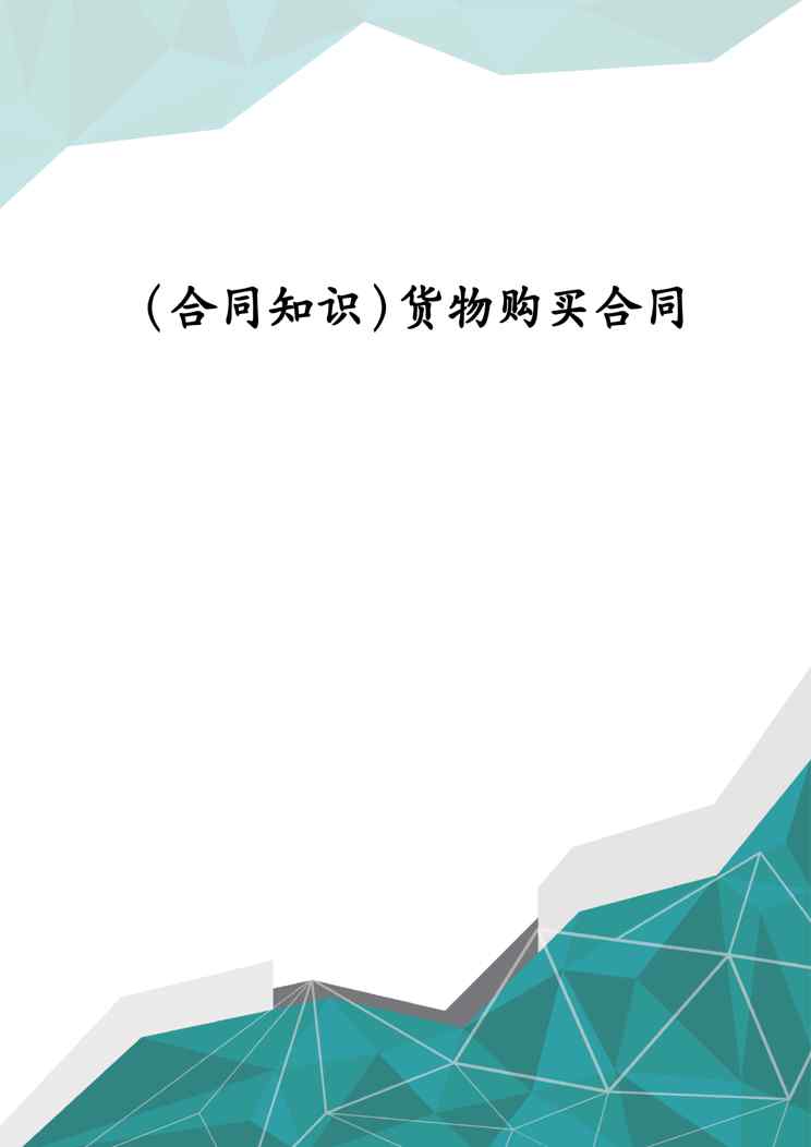 不久前,最新文档《(合同知识)货物购买合同》全文正式在本站发布,感兴趣的用户可以下载阅读。 声明:本站所有文章,如无特殊说明或标注,均为本站原创发布。任何个人或组织,在未征得本站同意时,禁止复制、盗用、采集、发布本站内容到任何网站、书籍等各类媒体平台。如若本站内容侵犯了原著者的合法权益,可联系我们进行处理。