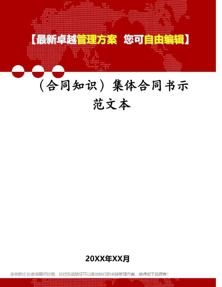 本站正式发布了《(合同知识)集体合同书示范文本》文档,文档详细内容可下载阅读。 声明:本站所有文章,如无特殊说明或标注,均为本站原创发布。任何个人或组织,在未征得本站同意时,禁止复制、盗用、采集、发布本站内容到任何网站、书籍等各类媒体平台。如若本站内容侵犯了原著者的合法权益,可联系我们进行处理。