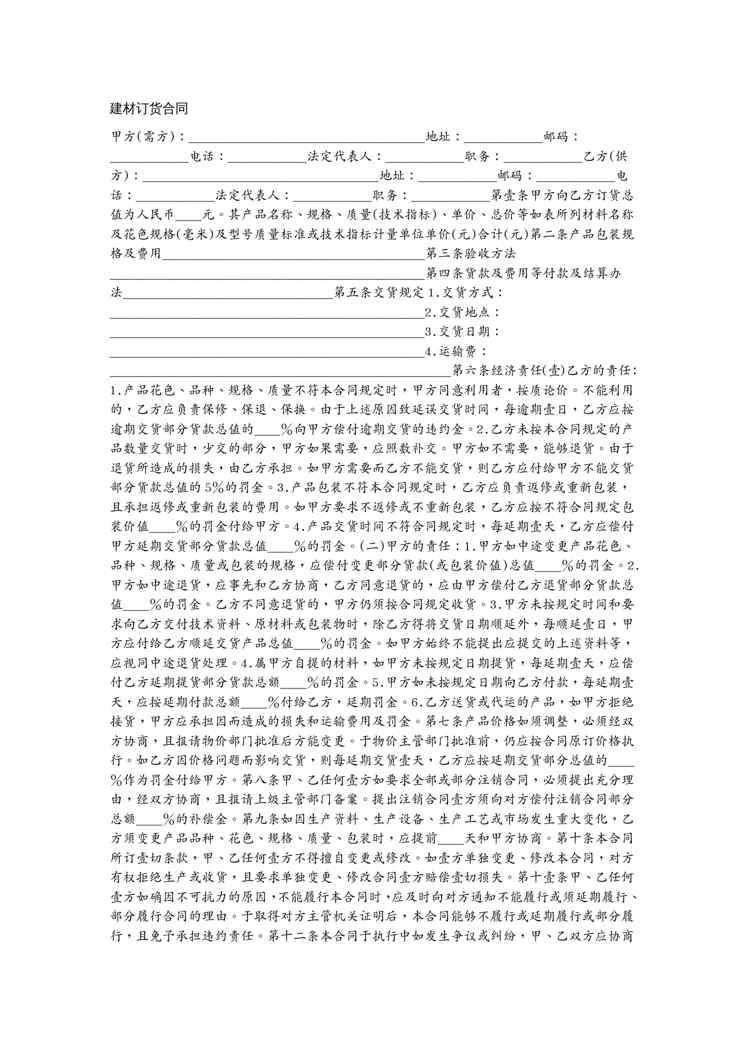 不久前,最新文档《(合同知识)建材订货合同》全文正式在本站发布,感兴趣的用户可以下载阅读。 声明:本站所有文章,如无特殊说明或标注,均为本站原创发布。任何个人或组织,在未征得本站同意时,禁止复制、盗用、采集、发布本站内容到任何网站、书籍等各类媒体平台。如若本站内容侵犯了原著者的合法权益,可联系我们进行处理。