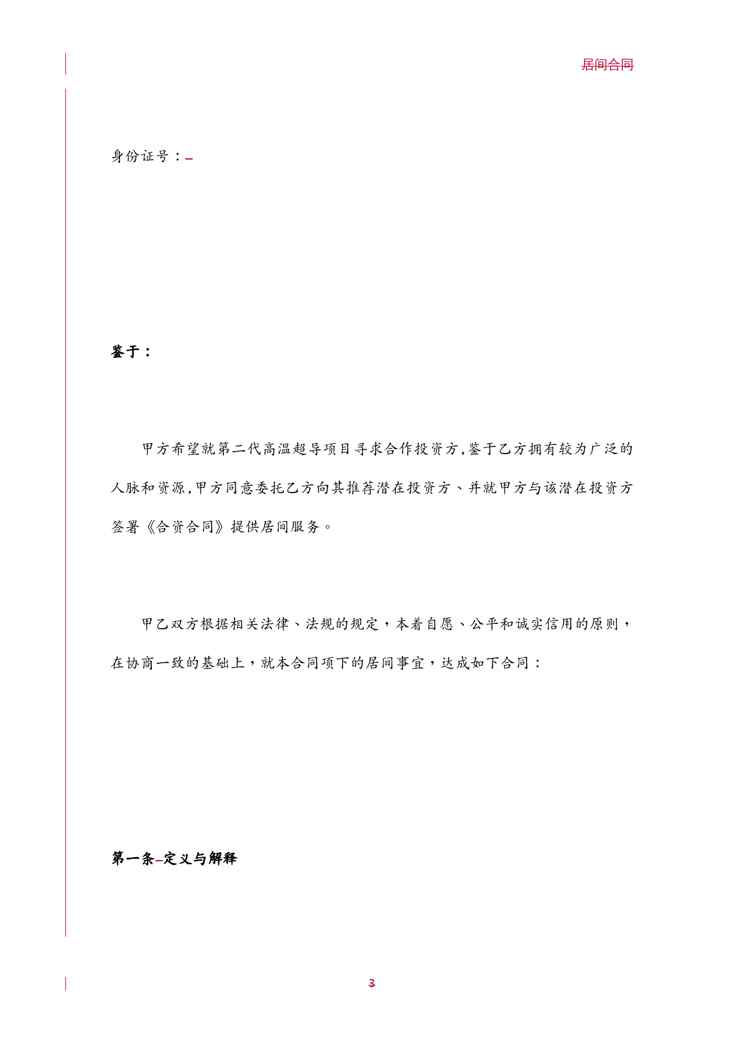 本站资深用户发布了最新的《(合同知识)居间合同》文档,以下内容为预览,详细内容可下载阅读。 声明:本站所有文章,如无特殊说明或标注,均为本站原创发布。任何个人或组织,在未征得本站同意时,禁止复制、盗用、采集、发布本站内容到任何网站、书籍等各类媒体平台。如若本站内容侵犯了原著者的合法权益,可联系我们进行处理。