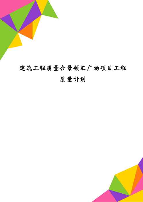 本站正式发布了《建筑工程质量合景领汇广场项目工程质量计划》文档,文档详细内容可下载阅读。 声明:本站所有文章,如无特殊说明或标注,均为本站原创发布。任何个人或组织,在未征得本站同意时,禁止复制、盗用、采集、发布本站内容到任何网站、书籍等各类媒体平台。如若本站内容侵犯了原著者的合法权益,可联系我们进行处理。