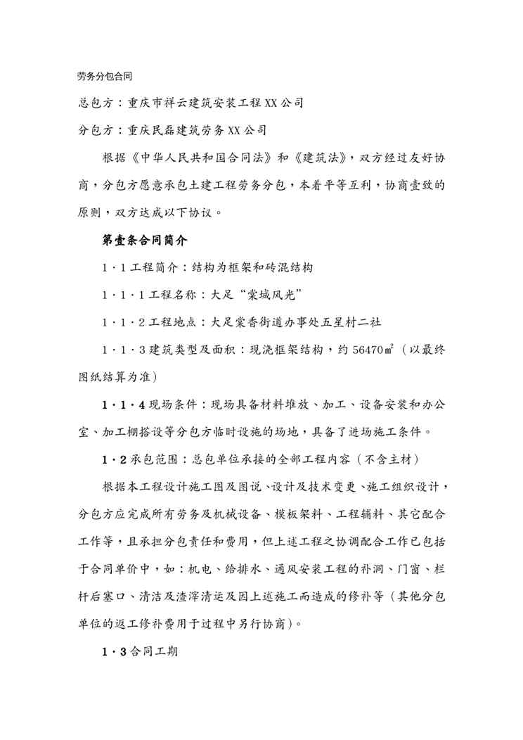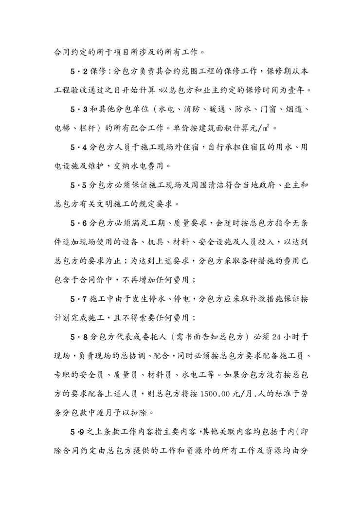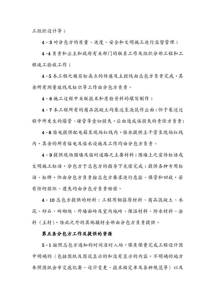本站资深用户发布了最新的《(合同知识)劳务分包合同(总合同)》文档,以下内容为预览,详细内容可下载阅读。 声明:本站所有文章,如无特殊说明或标注,均为本站原创发布。任何个人或组织,在未征得本站同意时,禁止复制、盗用、采集、发布本站内容到任何网站、书籍等各类媒体平台。如若本站内容侵犯了原著者的合法权益,可联系我们进行处理。
