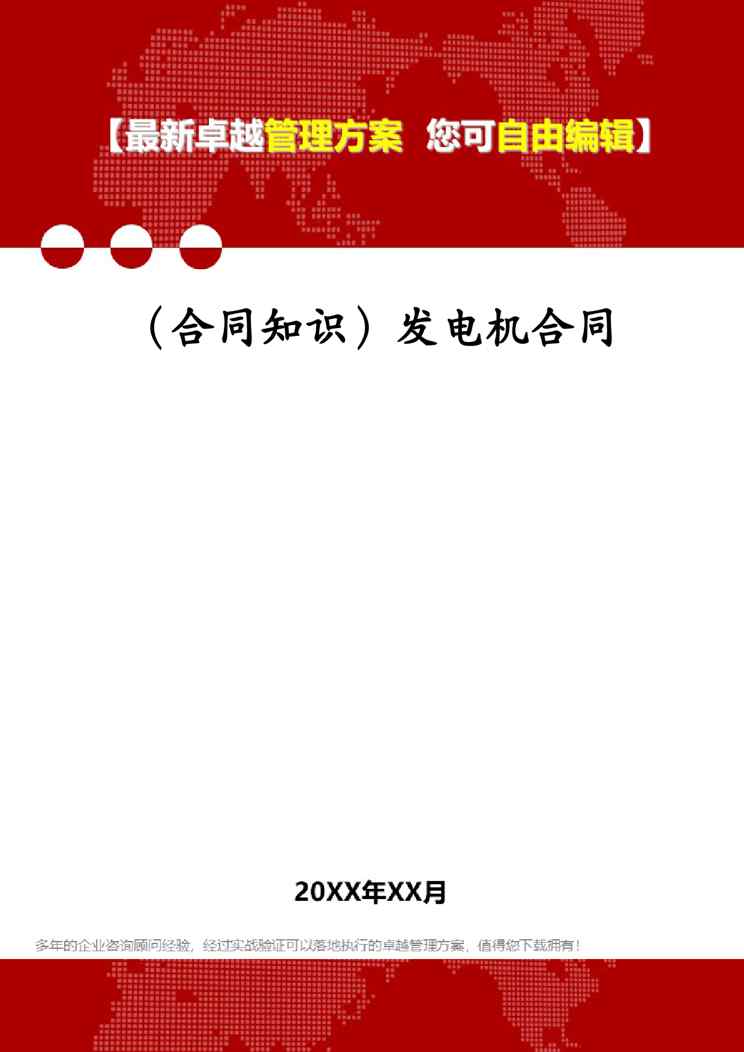 本站资深用户发布了最新的《(合同知识)发电机合同》文档,以下内容为预览,详细内容可下载阅读。 声明:本站所有文章,如无特殊说明或标注,均为本站原创发布。任何个人或组织,在未征得本站同意时,禁止复制、盗用、采集、发布本站内容到任何网站、书籍等各类媒体平台。如若本站内容侵犯了原著者的合法权益,可联系我们进行处理。