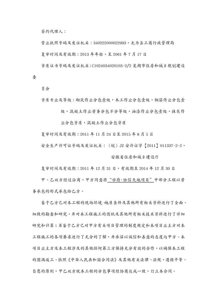 本站正式发布了《(合同知识)劳务分包合同协信》文档,文档详细内容可下载阅读。 声明:本站所有文章,如无特殊说明或标注,均为本站原创发布。任何个人或组织,在未征得本站同意时,禁止复制、盗用、采集、发布本站内容到任何网站、书籍等各类媒体平台。如若本站内容侵犯了原著者的合法权益,可联系我们进行处理。