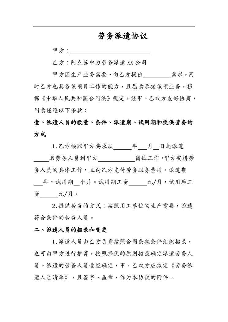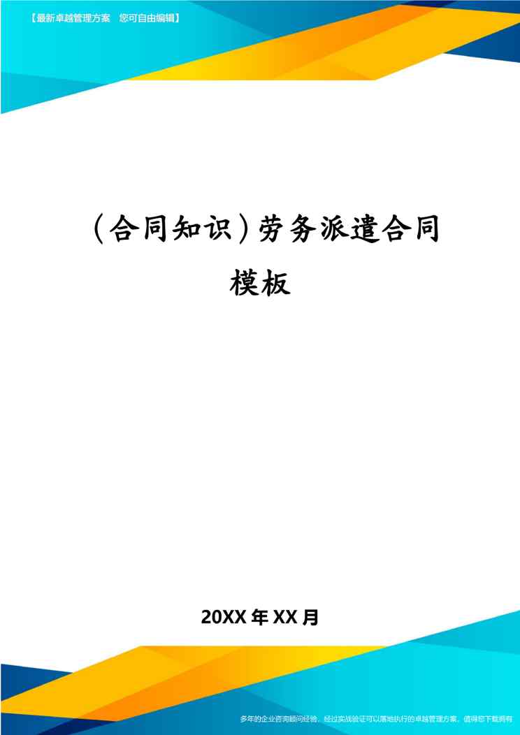 本站资深用户发布了最新的《(合同知识)劳务派遣合同模板》文档,以下内容为预览,详细内容可下载阅读。 声明:本站所有文章,如无特殊说明或标注,均为本站原创发布。任何个人或组织,在未征得本站同意时,禁止复制、盗用、采集、发布本站内容到任何网站、书籍等各类媒体平台。如若本站内容侵犯了原著者的合法权益,可联系我们进行处理。