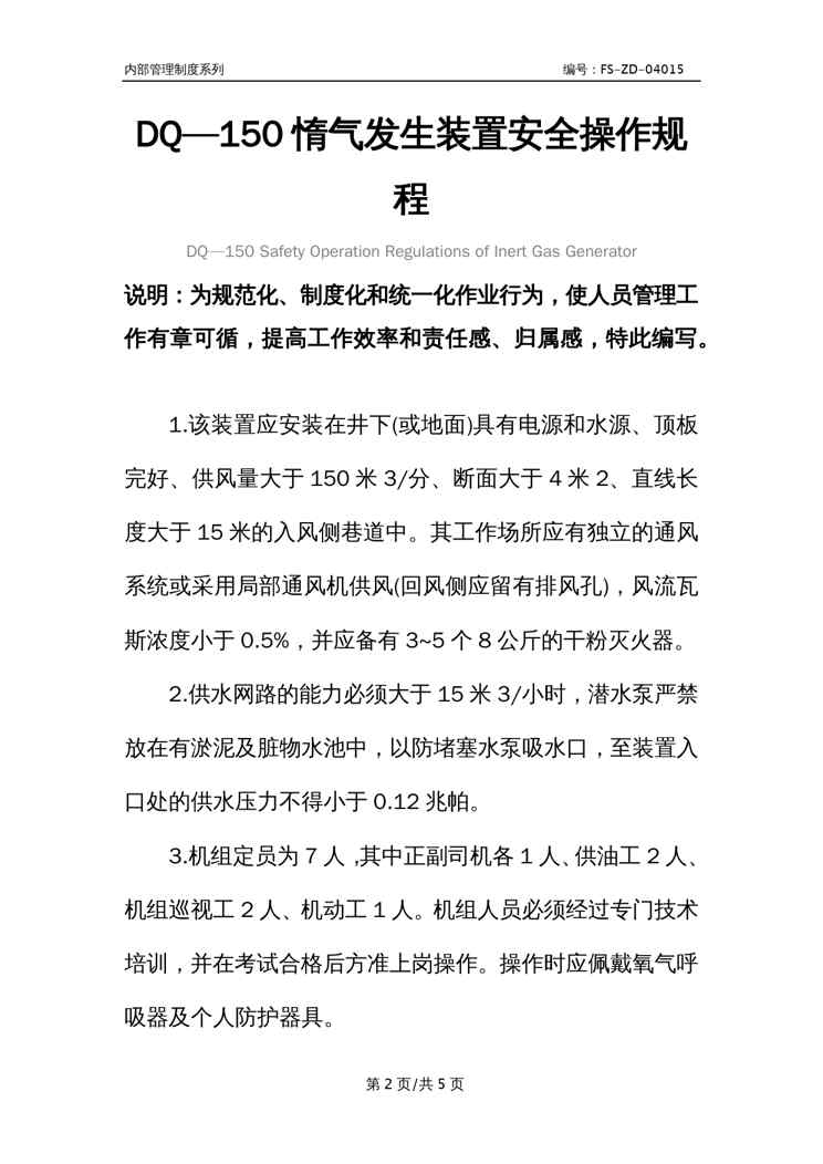 本站正式发布了《DQ—150惰气发生装置安全操作规程模板》文档,文档详细内容可下载阅读。 声明:本站所有文章,如无特殊说明或标注,均为本站原创发布。任何个人或组织,在未征得本站同意时,禁止复制、盗用、采集、发布本站内容到任何网站、书籍等各类媒体平台。如若本站内容侵犯了原著者的合法权益,可联系我们进行处理。
