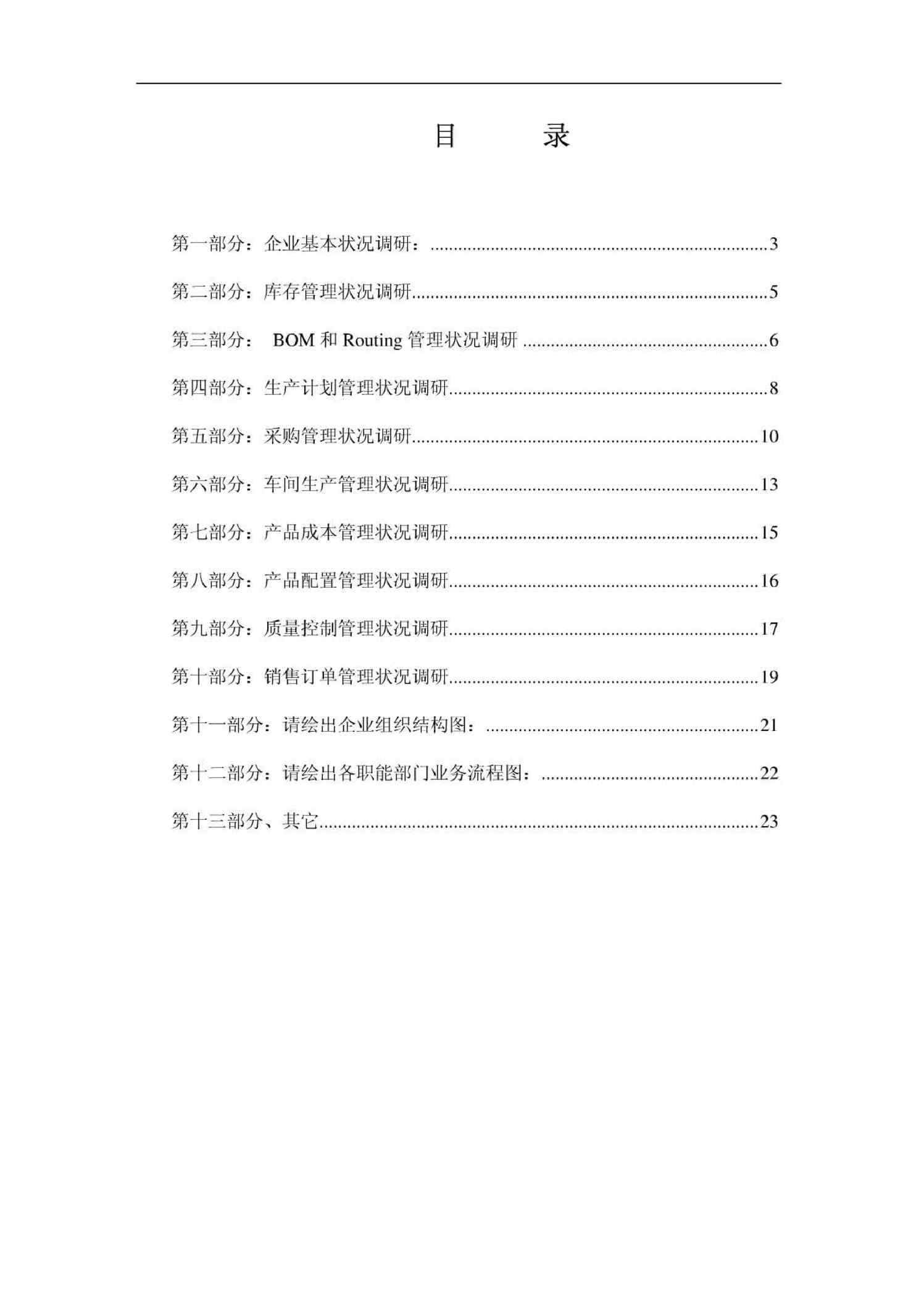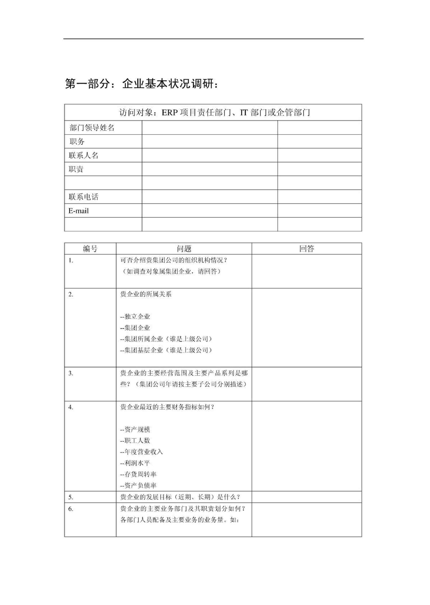 本站正式发布了《ERP系统调研问卷》文档,文档详细内容可下载阅读。 声明:本站所有文章,如无特殊说明或标注,均为本站原创发布。任何个人或组织,在未征得本站同意时,禁止复制、盗用、采集、发布本站内容到任何网站、书籍等各类媒体平台。如若本站内容侵犯了原著者的合法权益,可联系我们进行处理。