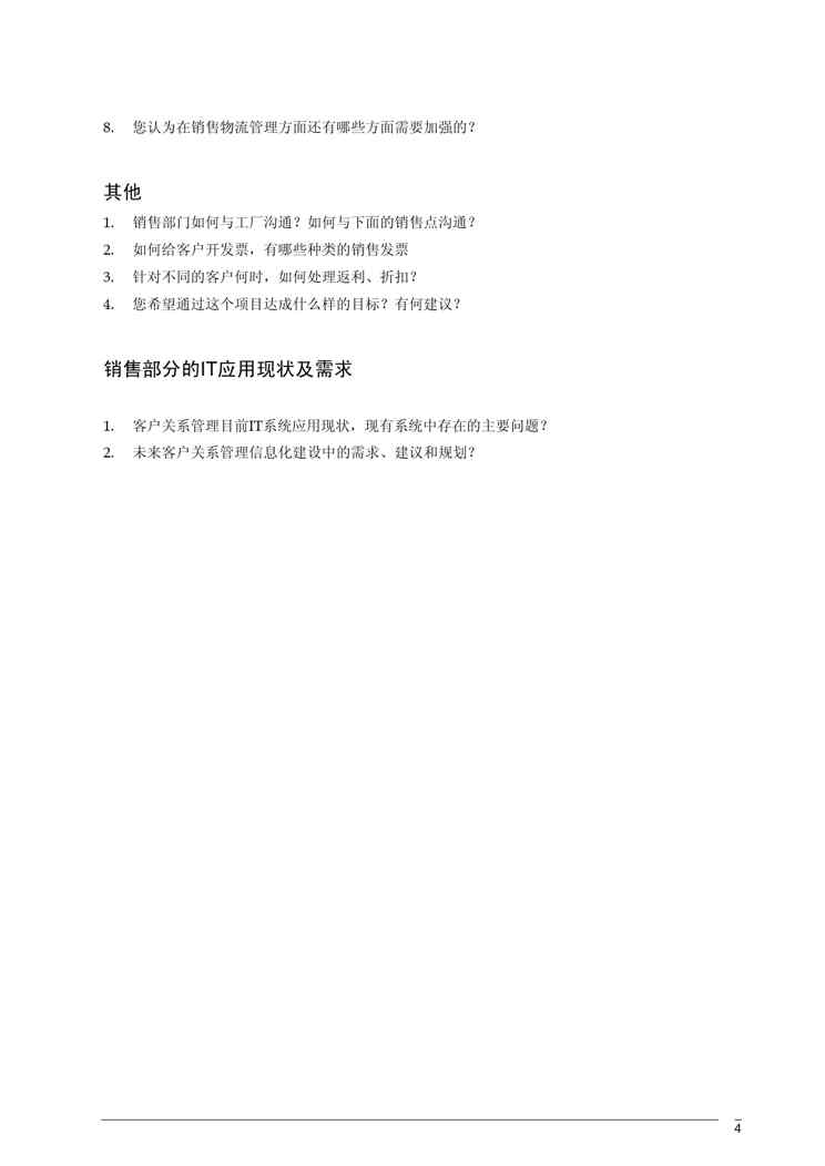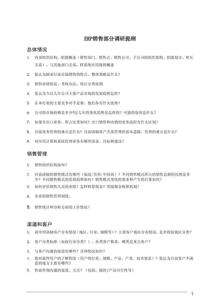 本站正式发布了《ERP销售部分调研提纲》文档,文档详细内容可下载阅读。 声明:本站所有文章,如无特殊说明或标注,均为本站原创发布。任何个人或组织,在未征得本站同意时,禁止复制、盗用、采集、发布本站内容到任何网站、书籍等各类媒体平台。如若本站内容侵犯了原著者的合法权益,可联系我们进行处理。