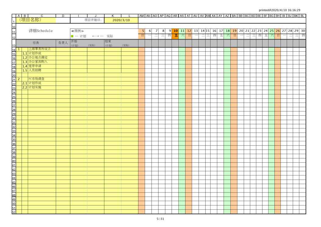 本站资深用户发布了最新的《Excel甘特图(计划实绩自动显示)》文档,以下内容为预览,详细内容可下载阅读。 声明:本站所有文章,如无特殊说明或标注,均为本站原创发布。任何个人或组织,在未征得本站同意时,禁止复制、盗用、采集、发布本站内容到任何网站、书籍等各类媒体平台。如若本站内容侵犯了原著者的合法权益,可联系我们进行处理。