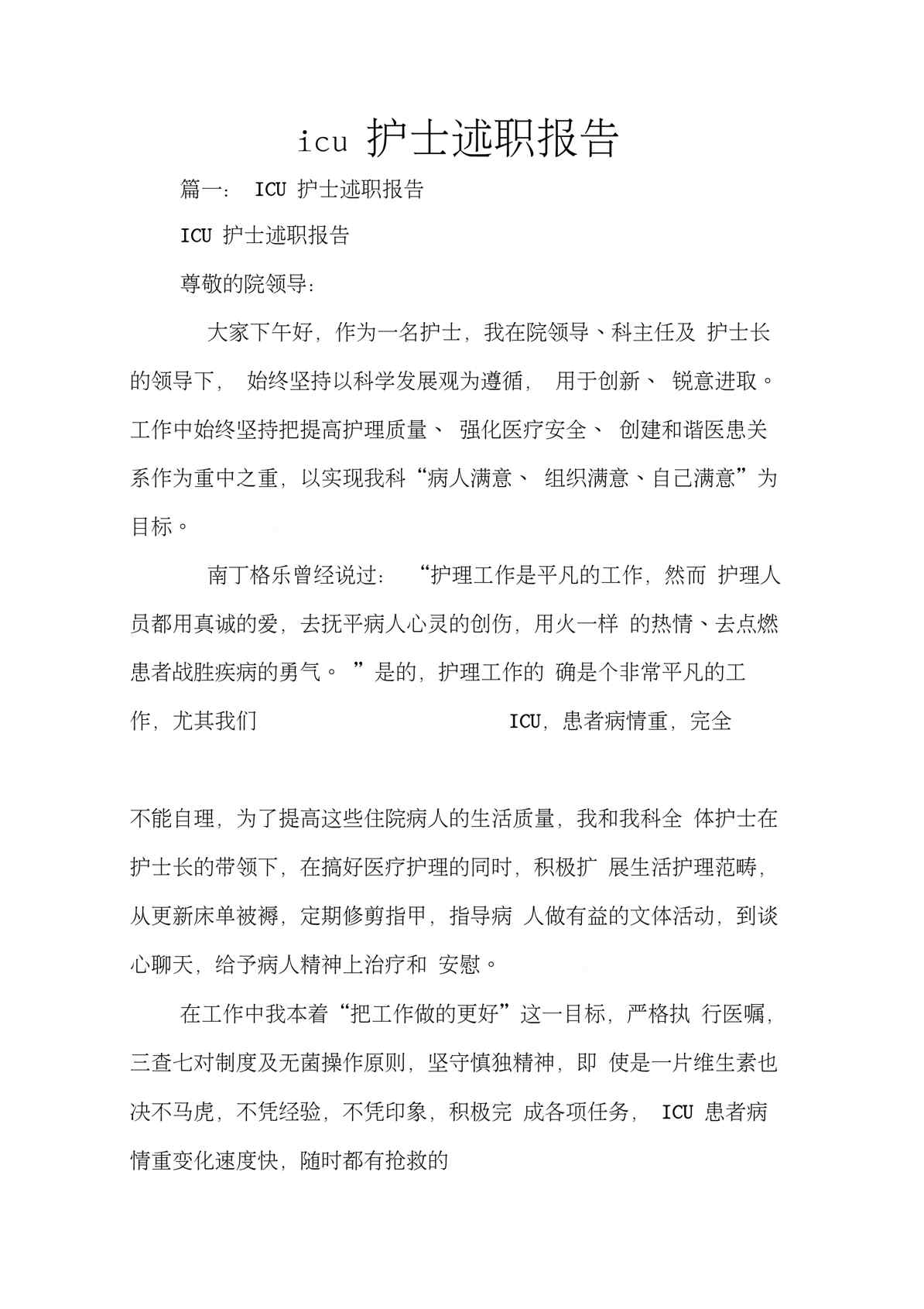 不久前,最新文档《icu护士述职报告》全文正式在本站发布,感兴趣的用户可以下载阅读。 声明:本站所有文章,如无特殊说明或标注,均为本站原创发布。任何个人或组织,在未征得本站同意时,禁止复制、盗用、采集、发布本站内容到任何网站、书籍等各类媒体平台。如若本站内容侵犯了原著者的合法权益,可联系我们进行处理。