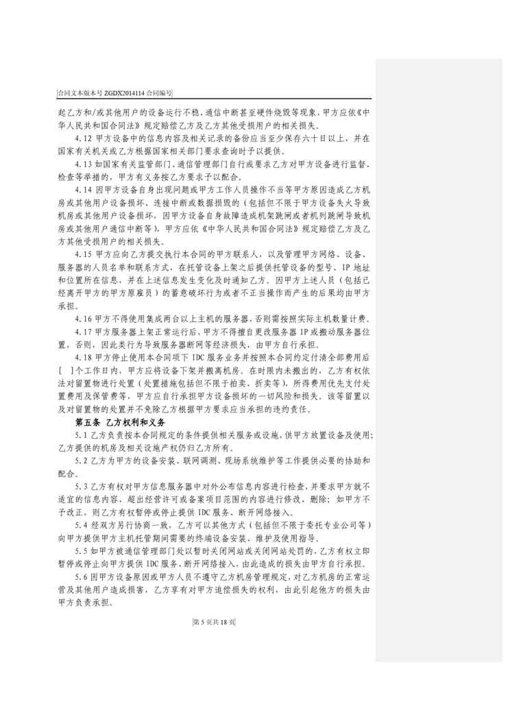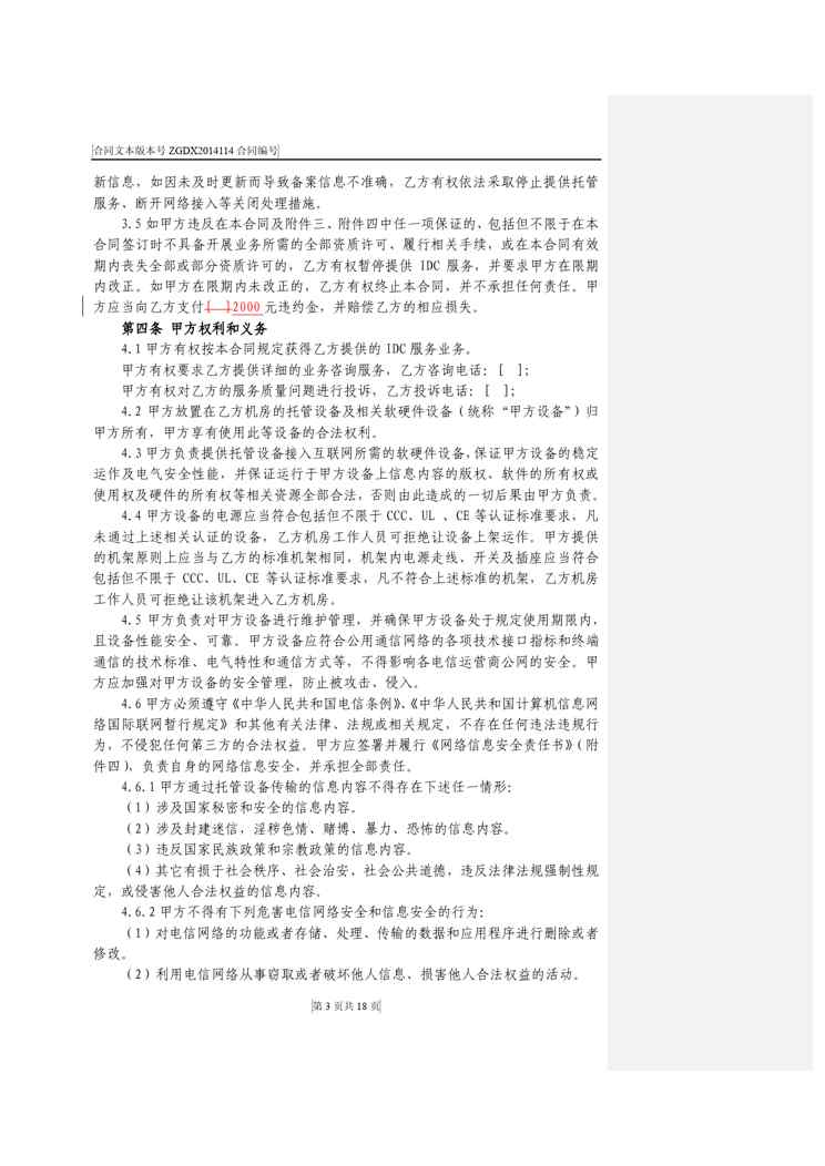 本站正式发布了《IDC服务合同》文档,文档详细内容可下载阅读。 声明:本站所有文章,如无特殊说明或标注,均为本站原创发布。任何个人或组织,在未征得本站同意时,禁止复制、盗用、采集、发布本站内容到任何网站、书籍等各类媒体平台。如若本站内容侵犯了原著者的合法权益,可联系我们进行处理。