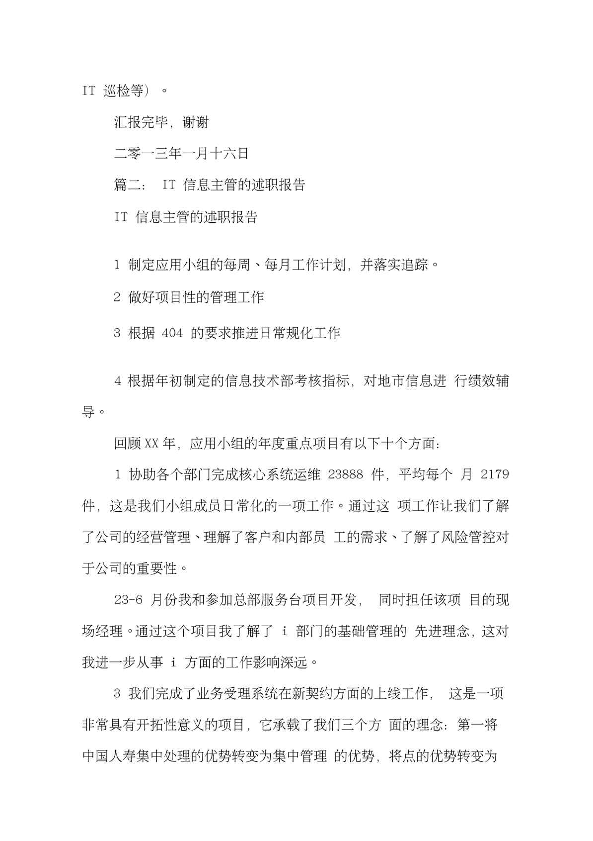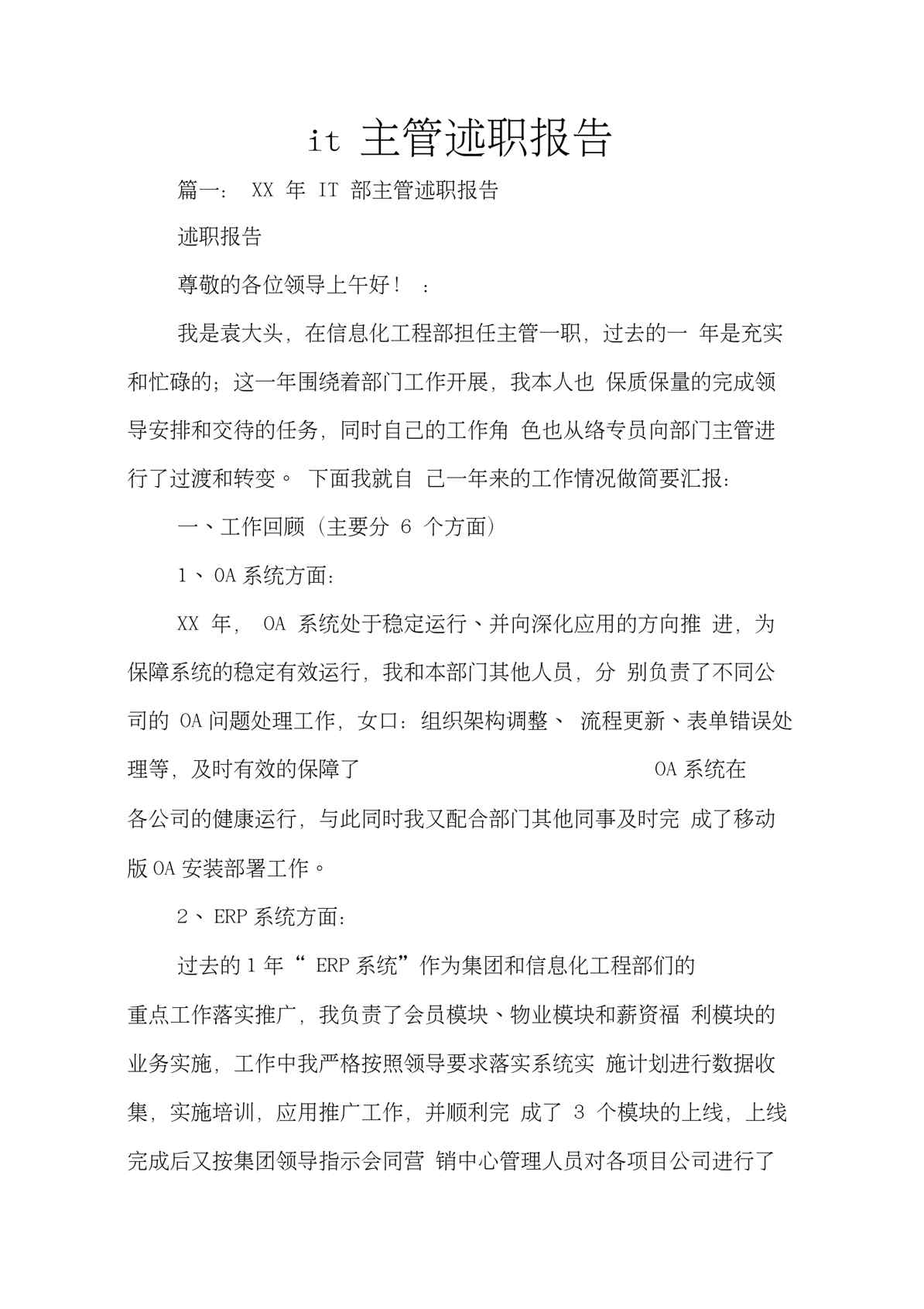 本站资深用户发布了最新的《it主管述职报告》文档,以下内容为预览,详细内容可下载阅读。 声明:本站所有文章,如无特殊说明或标注,均为本站原创发布。任何个人或组织,在未征得本站同意时,禁止复制、盗用、采集、发布本站内容到任何网站、书籍等各类媒体平台。如若本站内容侵犯了原著者的合法权益,可联系我们进行处理。